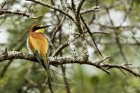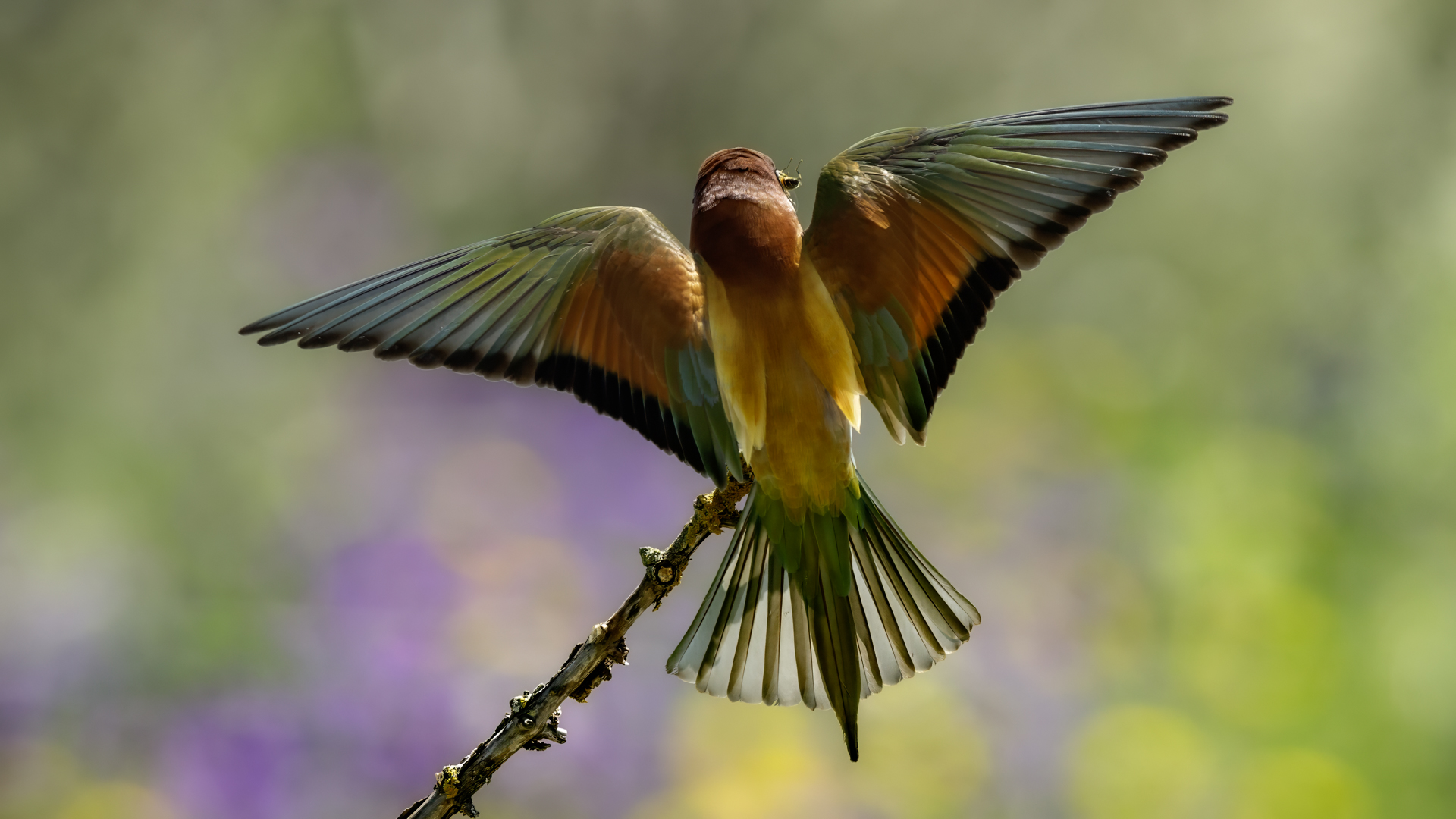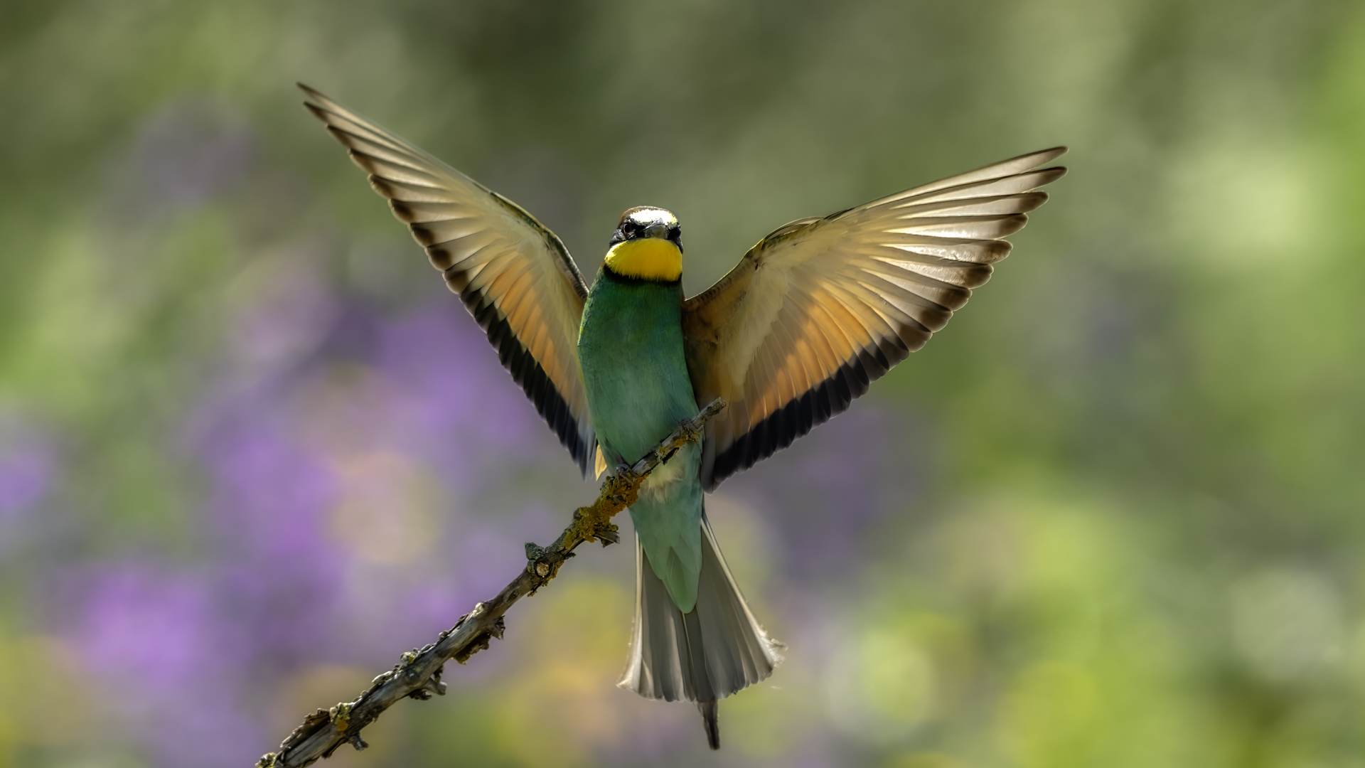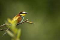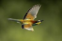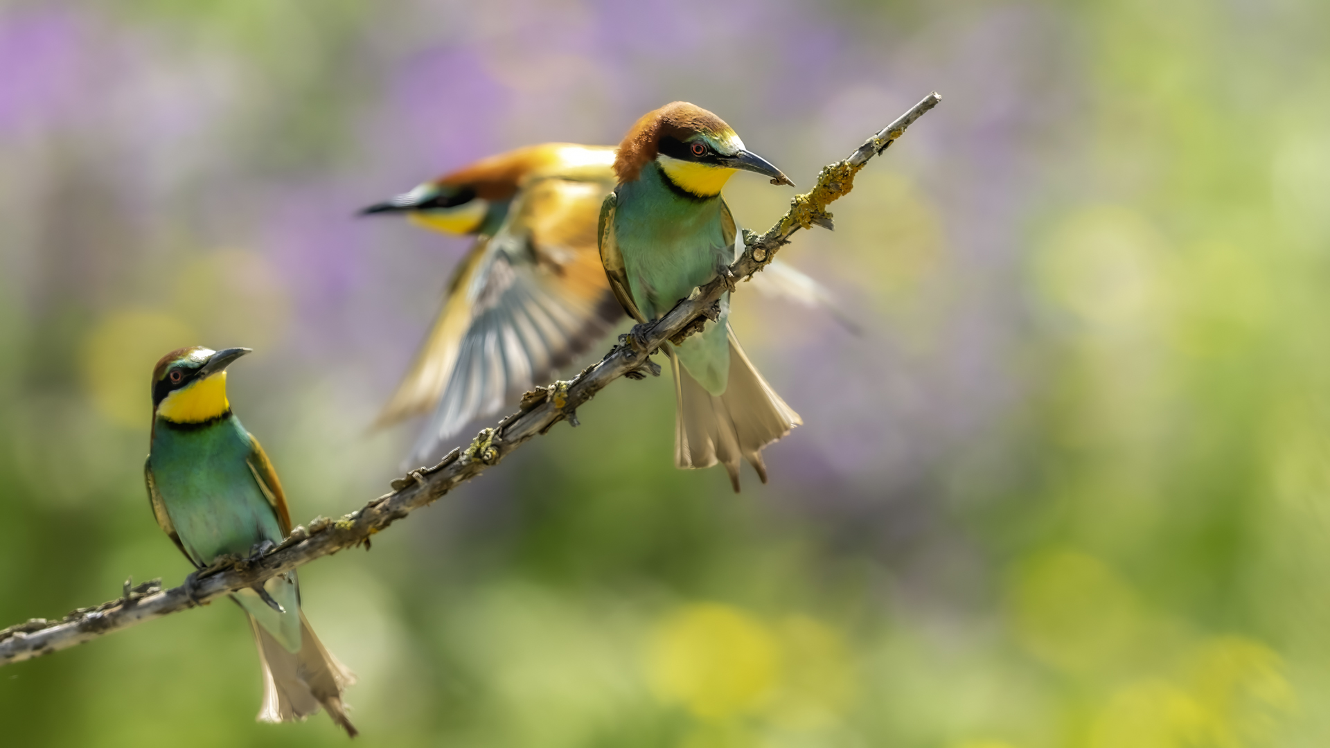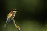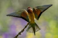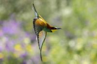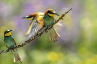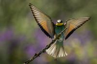 Kolejna galeria, która powstała na warsztatach w fotograficznych w Hiszpanii, w ramach odpoczynku, pomiędzy fotografowaniem w czatowniach dropiowych. Galeria powstała, choć mam wielki niedosyt z prezentowanych ujęć. Jeżeli już się wie, gdzie znajduje się kolonia żołny, to zapewniam Was, że wykonanie zdjęć to juz tylko funkcja czasu i ostateczny efekt w największym stopniu zależy od właściwego ustawienia czatowni i patyków na które żołny siadają, światła, no i refleksu. Pierwsze podejście do fotografowania było zupełnie nie trafione. Ustawienie czatowni i patyków, a do tego złośliwy nieopodal rolnik, zniweczył szanse na wykonanie zdjęć. Dlaczego złośliwy?, a to dlatego, że widząc nas w namiotowej czatowni, prawie zawsze w odległości nieraz kilkunastu metrów nas i od kolonii żołny wykonywał prace polowe, przy czym często w najbliższym naszym otoczeniu i koloni zatrzymywał hałaśliwy ciągnik. Zawsze miał coś tam do sprawdzenia przy nim. Jednym słowem nieporozumienie, tak zorganizowanego miejsca warsztatów. Przy drugim podejściu było lepiej, ale to jeszcze nie to. Wykonanie zdjąć żołny na patyku, to jak powiedziałem wcześniej nie sztuka i kres moich marzeń i planów w zakresie fotografowania tego gatunku. Zdjęcia żołny w locie wykonane z góry, chyba najlepiej przedstawianą piękno tego ptaka. Do tego dolatujące żołny do piaskowych gniazd z owadami w dziobach, to moje plany- ale jak widać na przyszłość. Żołny budują swoje kolonie na piaszczystych urwiskach, w których drążą norki/dziuple. Miejsce w którym fotografowałem rzeczywiście było dużą kolonią żołny. Problem polegał na tym, że na skutek osunięcia się urwiska, druciany płot, który wcześniej był na jej skraju, obecnie wisiał w powietrzu i był świetnym miejscem dla żołen do odpoczynku. Mając takie dogodne miejsce do przesiadywania zrezygnowały z patyków usytuowanych w bardziej oddalonej od gniazd części. Zamieszczam kilka zdjęć żołen na drutach, bo tam można było je fotografować bez ograniczeń. Ale co to za sceneria- drut u podstawy i niebo w tle? Gorszego scenariusza dla ptaka o rajskim ubarwieniu chyba nie ma. Na szczęście po lewej stronie jeden z patyków był umocowany w płocie, który tam jeszcze był w gruncie, a nie wisiał w powietrzu, jak to miało miejsce po prawej stronie. W tle tego miejsca -zieleń i fioletowe kwiaty, a więc znacznie lepiej. Nie łudząc się że po prawej stronie coś uda się ciekawego wykonać, przestawiłem statyw z aparatem na lewą stronę i tu znów niespodzianka. Zdjęcia żołny na patyku są rzeczywiście ciekawe, ale jestem za blisko, aby wykonać dynamiczne zdjęcia tego ptaka. Tak więc dyskretnie uniosłem całą czatownię wraz z zestawem i oddalam się od dotychczasowego miejsca czatowania. Kątem oka co chwilę sprawdzam, reakcję ptaków, ale one nawet nie odfrunęły z patyka. Wycofałem się tak 6-8 metrów i dzięki temu mam kilka dynamicznych ujęć, niestety nie przy gniazdach, bo tych w tak usytuowanej czatowni nawet ich nie widziałem. Ale i tak nie żałuję bo powstała dzięki temu inna galeria, do której zdjęcia w Polsce trudno było by wykonać - czapli nadobnej. Ale wracając do naszego pleneru. Patyk był najwyższym punktem w otoczeniu kolonii a zatem zawsze nurkowały w dół i widziałem je nurkujące niespełna metr, a na patyku pojawiały się nagle, często z dołu. Miejmy nadzieją, że będzie jaszcze okazja aby sfotografować tego barwnego ptaka. Żołny są bardzo dynamicznymi ptakami. Odżywiają się owadami, które chwytają w locie. Masa żołny to około 50 gramów przy rozpiętości skrzydeł niespełna pół metra. Cała kolonia wydaje specyficzny dźwięk, podobnie pod względem natężenia dźwięku, do tego jaki występuje przy ulu. Miejmy nadzieję, że będzie jeszcze okazja aby rozbudować tę galerię, bo takie jak galeria dropa, to już chyba zamknięty rozdział.