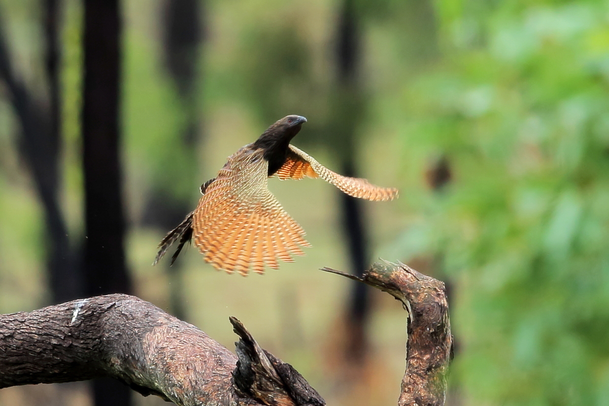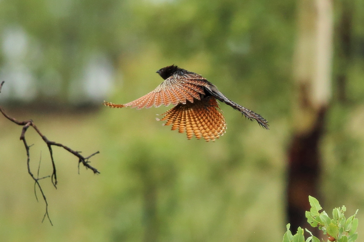 Jest wiele fascynujących ptaków w Australii, ale mnie obserwowanie kukala bażanciego  po raz pierwszy dało wiele emocji i satysfakcji. Widziałem go kilka razy i efektem tego są prezentowane zdjęcia. Już sama nazwa daje do myślenia. Czy to jest bardziej kukułka, czy bażant? Formalnie należy do rodziny kukułkowatych, a sama sylwetka, może nieco wydłużona, przypomina rzeczywiście wielkością bażanta. Sam wygląd ostatecznie kojarzy się bardziej z drapieżnikiem, niż przedstawicielami grzebiących. Tyle różnych cech w jednym gatunku budzi zawsze takie emocje. Niestety nie doszukałem się informacji czy, jak nasza kukułka, jest sprytnym, wygodnym rodzicem, ale w porównaniu do naszego bażanta - kukal jest chyba bardziej skory do latania. Kilkakrotnie podchodziłem do niego na tyle blisko, że po poderwaniu się do lotu przelatywał bez trudu spore odległości, siadając zawsze w wyżej położonym miejscu mając widok na całą okolicę. Tu sesja zawsze się już kończyła, nie tak jak w przypadku żałobnicy rudosternej. Zdjęcia kukala bażanciego w locie, na tle zielonego buszu rdzawe pióra na skrzydłach, chyba najlepiej pokazują urok i piękno tego ptaka. No i te pióra niczym peleryna. Kukale są znacznie lżejsze od naszych bażantów. Waga ich nie przekracza pół kilograma, a rozpiętość skrzydeł to około pół metra. Szkoda, że można go spotkać jedynie w Australii i Nowej Gwinei. Zapraszam…