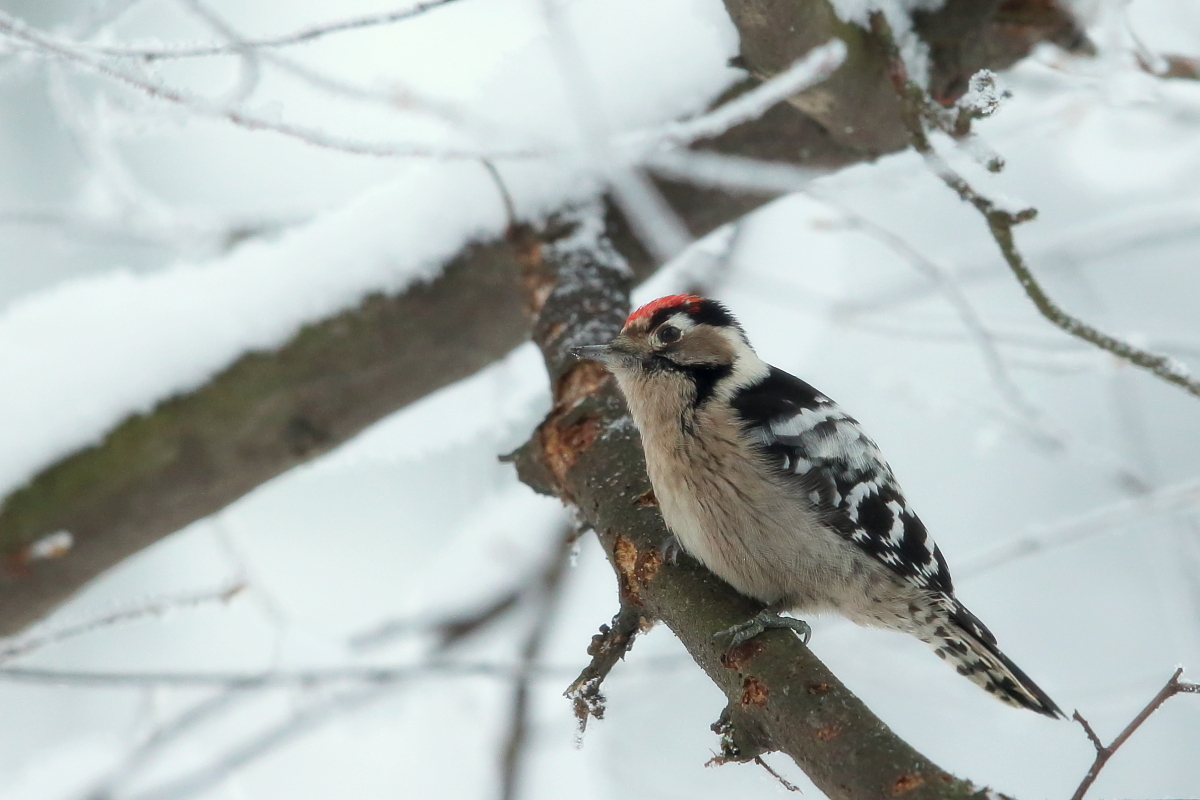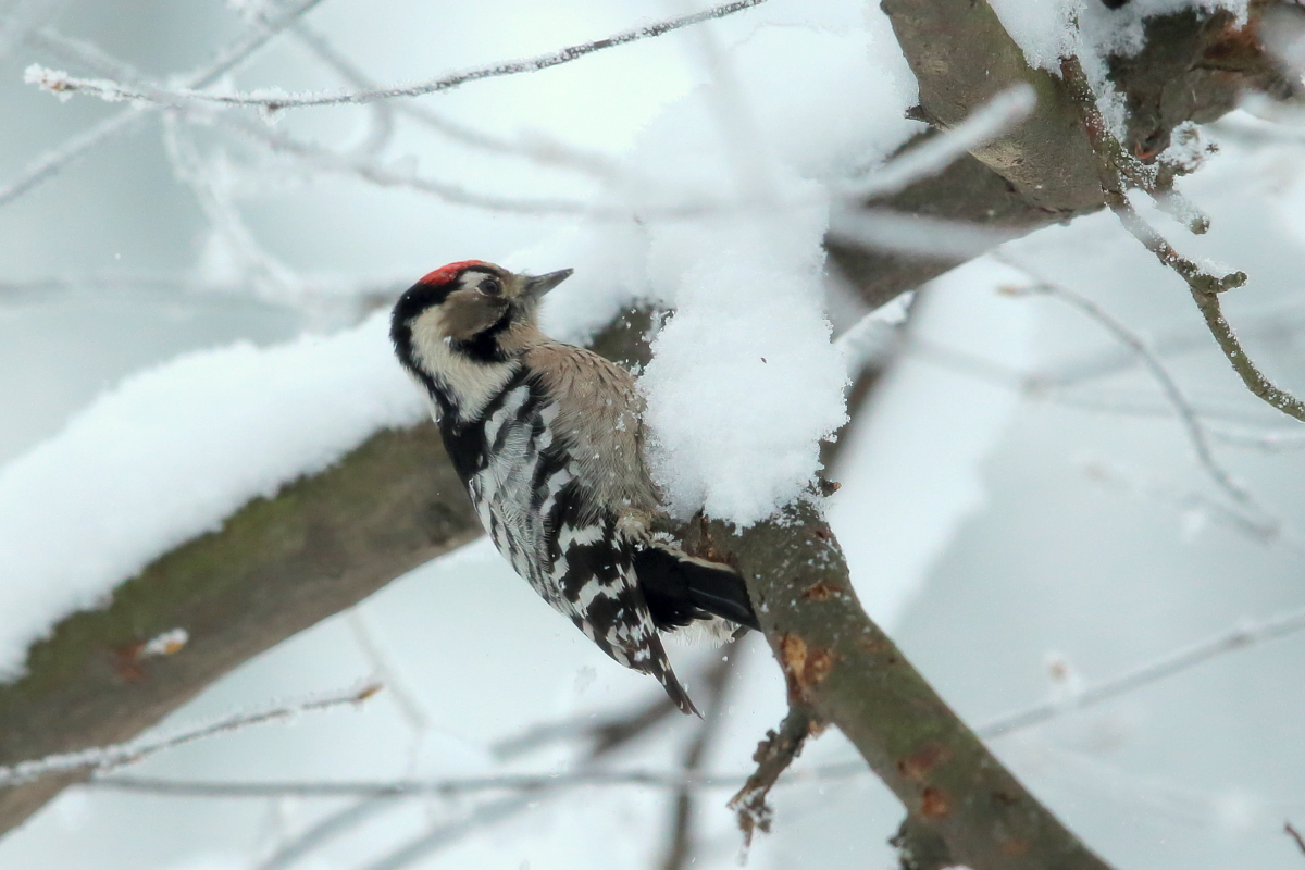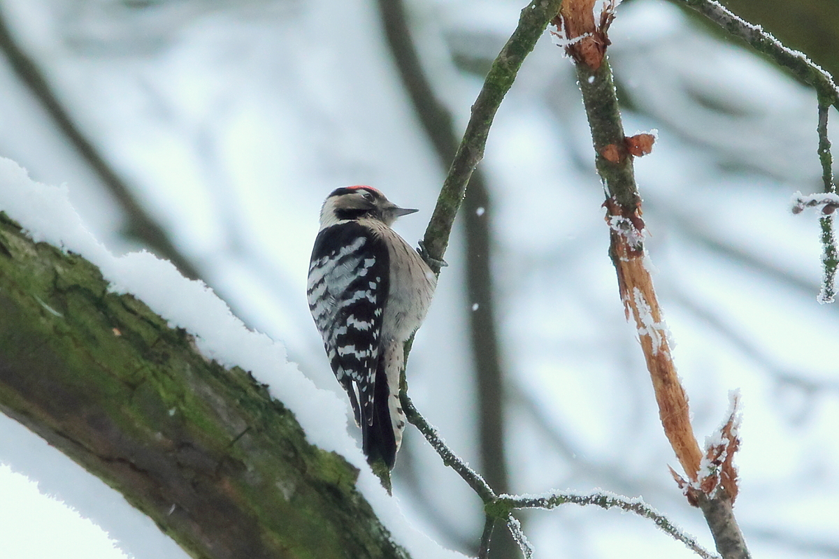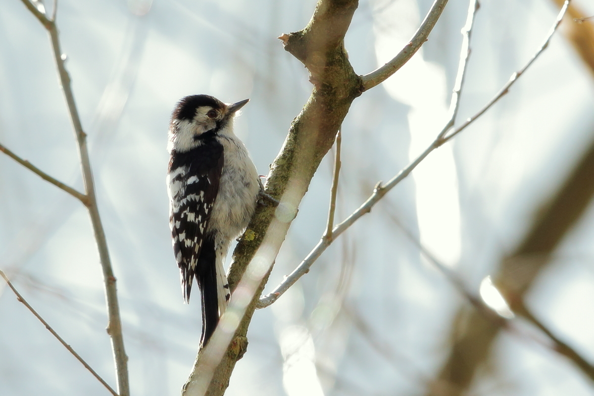 Wreszcie po ponad dwóch latach pojawiają się kolejne zdjęcia dzięciołka w mojej galerii. Niestety jak to z dzięciołami bywa, powstały podczas próby ich podejścia, bez statywu z "ręki". Dzięciołek był zawsze dość wysoko, w koronach drzew a więc trudno o dobre zdjęcia ze zbliżeniami tego ptaka. Do tego niewielkie rozmiary dzięciołka utrudniały zadanie. Zmiany na tyle duże, że galeria została przebudowana, ale zbyt małe, aby trafić do nowości.