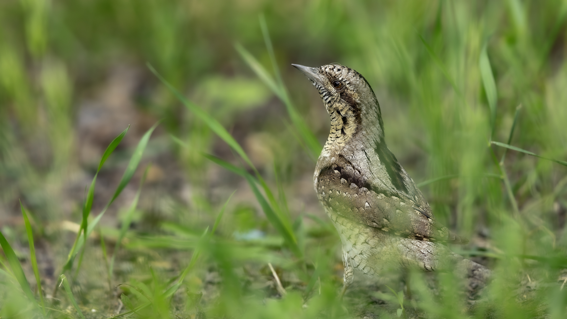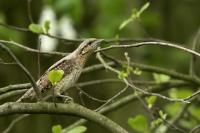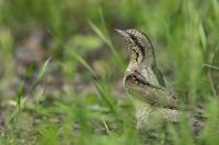 Tego, jeszcze nie było. Tak "młoda galeria", niedawno założona, właśnie skompletowana (obróbka głosu, tekst polski, tłumaczenie- wymaga trochę czasu, którego zawsze brakuje..), i tu taaaka jej odmiana. I znów przypadek. Jeszcze w głowie miałem świeżo co "obrabiane" głosy krętogłowów, a tu idąc na ogródki działkowe z Teściem, jakiś głos dziwnie nie dawał mi spokoju, choć z początku, nie potrafiłem skojarzyć tego dźwięku. I nagle zobaczyłem krzątającą się w okolicy parę krętogłowów. A że było to na ogródkach działkowych, nie trzeba było wielkich przygotowań do fotografowania. Przechodzący ludzie, z zainteresowaniem spoglądający na siatkę maskującą nie płoszyli krętogłowów. Efekt krótkiej sesji, przynajmniej jak dla mnie, piorunujący. W zeszłym roku próbowałem wielokrotnie zrobić, choć jedno kontaktowe, dokumentacyjne zdjęcie krętogłowa i nic. Chyba w tym fachu trzeba mieć sprzęt zawsze przy sobie, bywać w terenie ile sie da, a co powstanie- chyba nie da się zaplanować. Chyba cały urok w tym właśnie...