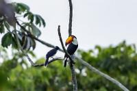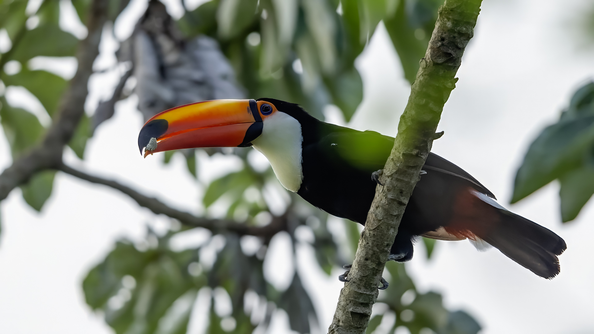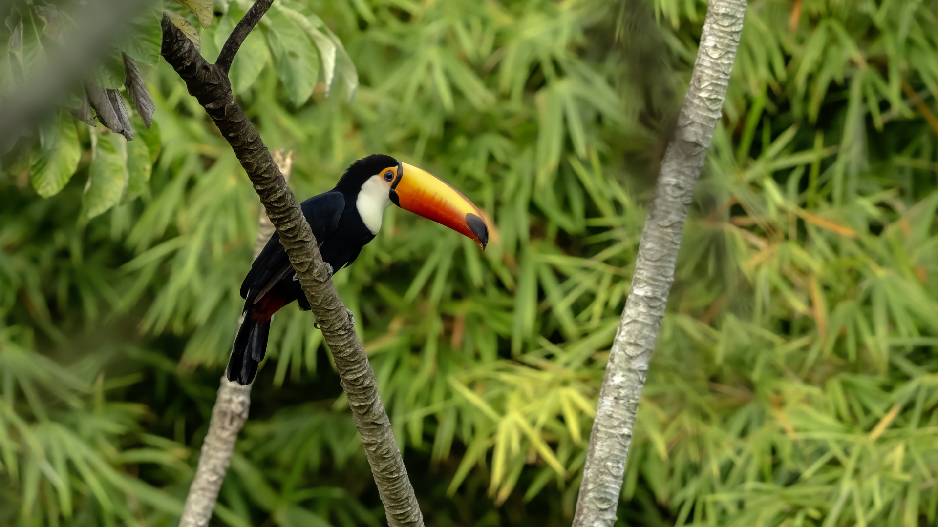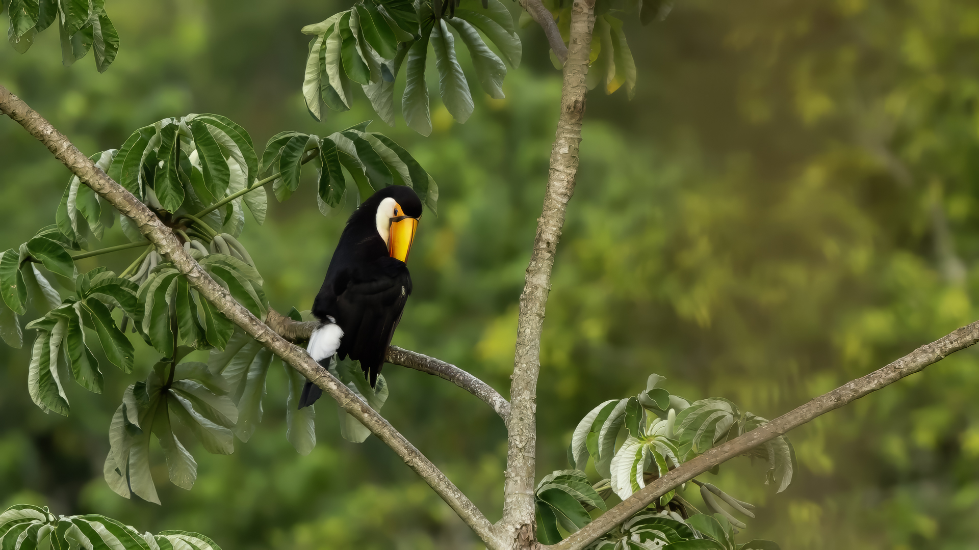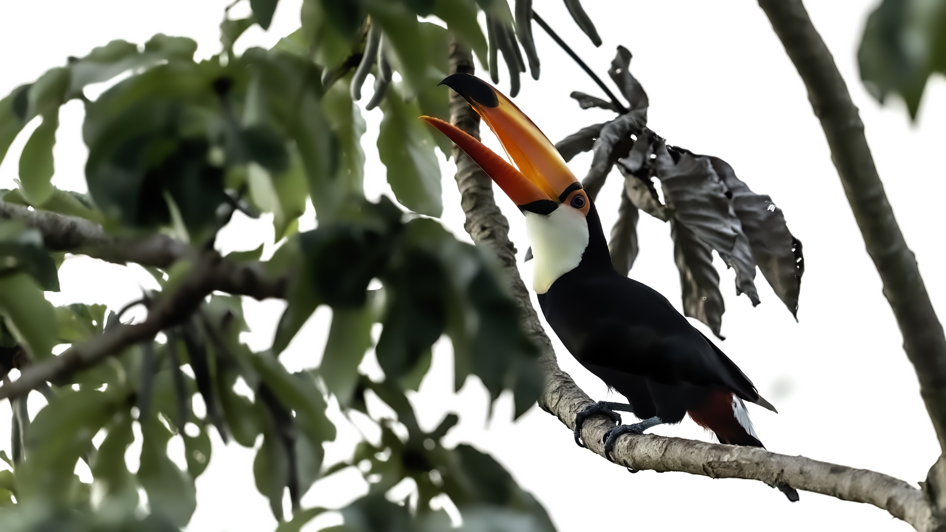 Niesamowity piękny ptak, niesamowite spojrzenie i wyróżniający go z grona innych ptaków potężny dziób. Tukany fotografowałem o wschodzie słońca niedaleko wodospadu Iguazú. Huk spadającej wody był wszechobecny. Tukany pojawiły się dosłownie na kilkadziesiąt minut. Było ich około 10-ciu. Powoli się do nas przybliżały, by po chwili odlecieć na żerowiska położone w lesie deszczowym. Musiały spać w lasach niedaleko wodospadu, a my stanęliśmy im w przelocie, a właściwie przemieszczaniu się na drodze na śniadanie. Tukany powoli penetrowały korony drzew w poszukiwaniu pożywienia. Przeskakiwały z gałęzi na gałąź lub przelatywały niewielkie odległości pomiędzy drzewami. Dzięki tylko takiemu spokojnemu zachowaniu, mogło powstać tyle prezentowanych zdjęć. Będąc popołudniu w lesie deszczowym widziałem tukany wielkie oraz drugi gatunek tukana, jaki udało mi się sfotografować – arasari brązowouchego. Ten drugi gatunek, prawie zawsze jednak na tle nieba i ze znacznie większej odległości. No cóż, te kilkadziesiąt minut obcowania z tukanami wielkimi zaowocowało powstaniem prezentowanej galerii, a wrażenie i emocje tak duże, że tekst związany z tym ptakiem, staje się tekstem wprowadzającym do argentyńskich galerii na mojej stronie. Tukan wielki, jest największym spośród żyjących tukanów w Ameryce Południowej. Waga jego ciała to niespełna kilogram (około 800-900 gramów). Samice znacznie mniejsze, ważą około 0,5 kilograma. Wyróżniający go potężny dziób mierzy około 20 centymetrów. Tukany należą do rodziny dzięciołowatych i żywią się głównie owocami.