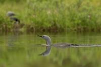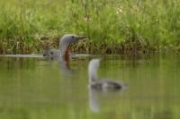 Zdjęcia nura rdzawoszyjego powstały w krótkiej przewie, pomiędzy pobytem w jednej, a drugiej czatowni i fotografowaniem głuszców i cietrzewi. Był to gatunek, który chciałoby się mieć, ale w naszych warunkach bardzo trudny od zaobserwowania, nie mówiąc już o sfotografowaniu. Fotografowałem nura zimą 2013 roku w Juracie, ale zachodziło słońce, ptak spał na wodzie i odległość była zbyt duża. Powstały zdjęcia, z których także trudno było o jednoznaczną identyfikację gatunku, tak więc nie zamieściłem ich na mojej stronie. Ale w Szwecji, miejscu gdzie nury występują znacznie częściej i jest to kraj ich rozmnażania zupełnie inna sytuacja. W okolicy w której fotografowaliśmy było wiele jezior, jeziorek i oczek wodnych. Na tych najmniejszych widać było często gągoły. Na tych średnich zbiornikach nury. Podchodząc do zbiornika nur powoli, ale zdecydowanie się oddalał, ale nie uciekał. Wykonane zdjęcia nie były wykonane z żadnej czatowni (a szkoda, tu ukłony do organizatora warsztatów, bo ich jakość byłaby nie do porównania), a jedynie ze spokojnego wyczekiwani nad brzegiem w zaroślach. Zbiorniki były na tyle małe, że nawet wolno pływający nur zmniejszał odległość od nas. Niestety zawsze pozostawało kilkadziesiąt metrów. Nury rdzawoszyje żywią się rybami. Osiągają masę swojego ciała do 2,5 kilograma i rozpiętości skrzydeł do 1,2 metra. Upierzenie ich głów jest rzeczywiście niesamowite i mam nadzieję, że mimo utrudnień plenerowych, braku czatowni udało się wyeksponować specyficzny urok tego ptaka.