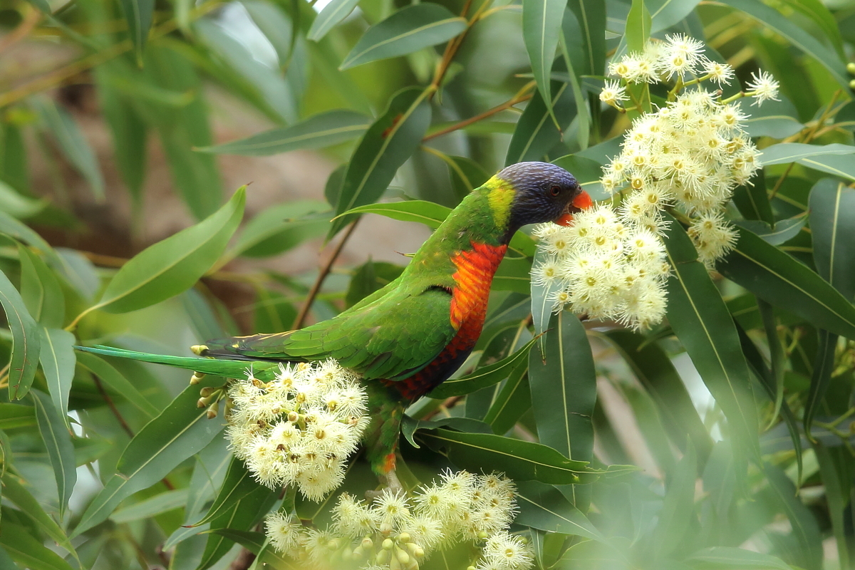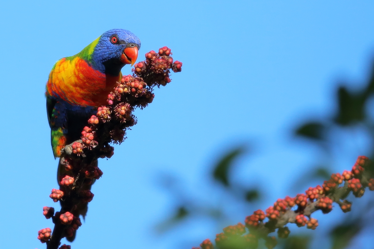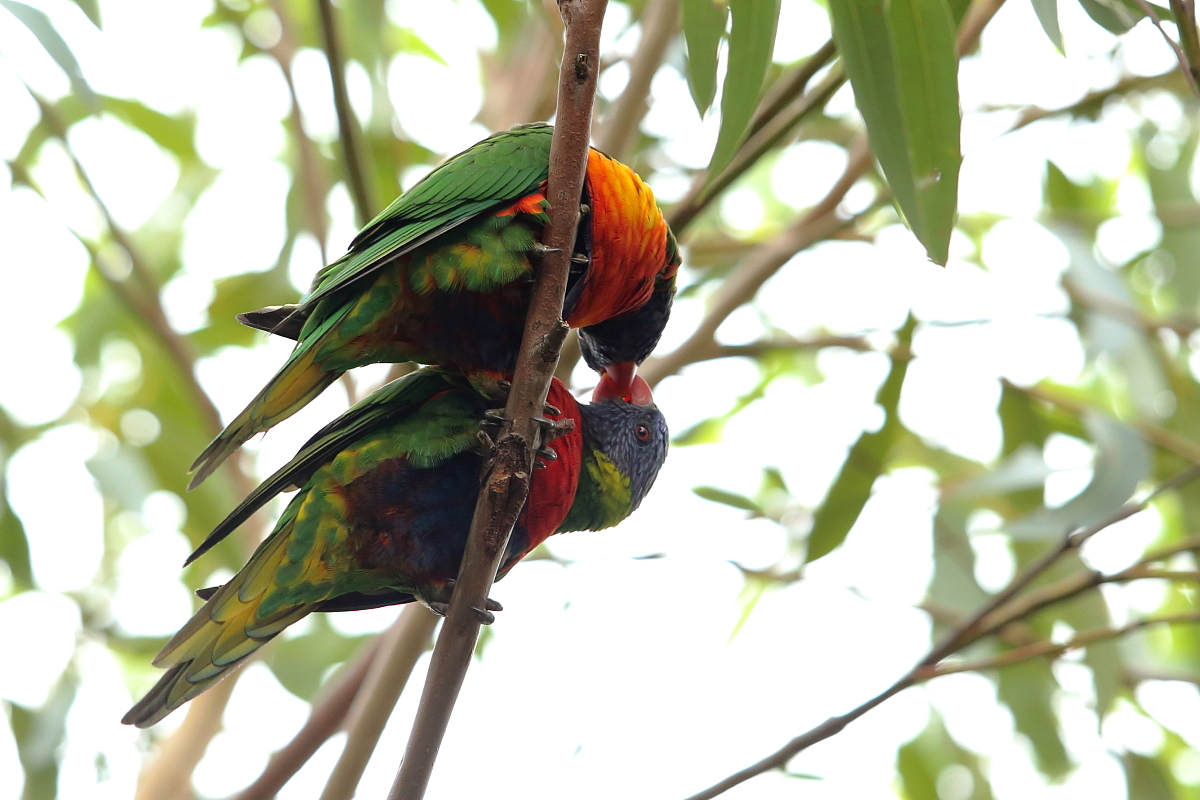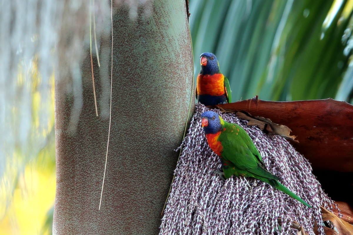 Te papugi pewnie śmiało można porównać do naszych wróbli. W Sydney, Tonsville można spotkać całe ich stada i nie ma problemu z ich znalezieniem. Jak to papugi, do skrytych i cichych nie należą, a na potwierdzenie tego zapraszam do wysłuchania nagranego ich głosu. Najgłośniejsze hałasy, to właśnie ich odgłosy. Często w ich otoczeniu znajdują się też inne ptaki, tak więc, zwłaszcza w mieście, trudno było o czysty dźwięk. Są naprawdę miejską ozdobą pomijając ich odgłosy poranne, gdzie w cichym budzącym się do życia mieście wydają się one wręcz przeraźliwe. Prezentowane zdjęcia wykonałem z odległości około 10 metrów jak spokojnie żerują na kwiatach, czy owocach. Jak na nasze warunki, są rzeczywiście kolorowe, barwne.  Pozostawiona przy domach żywność, szczególnie pieczywo, przyciąga ich uwagę i przylatują gromadnie na posiłek.