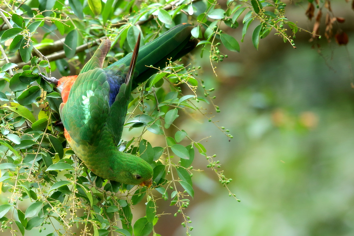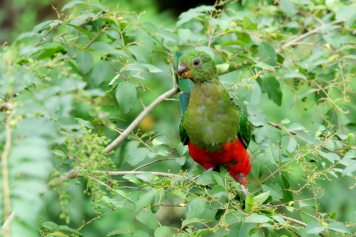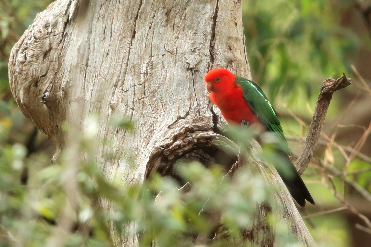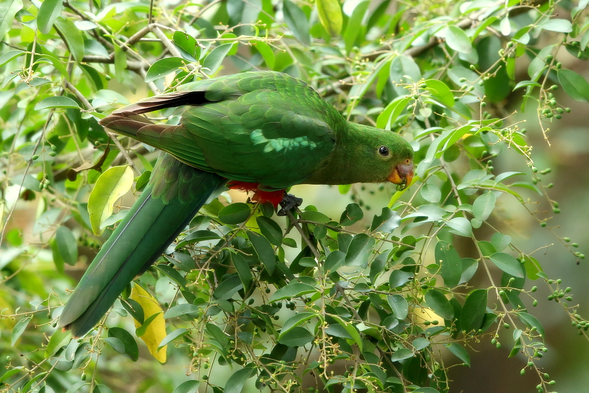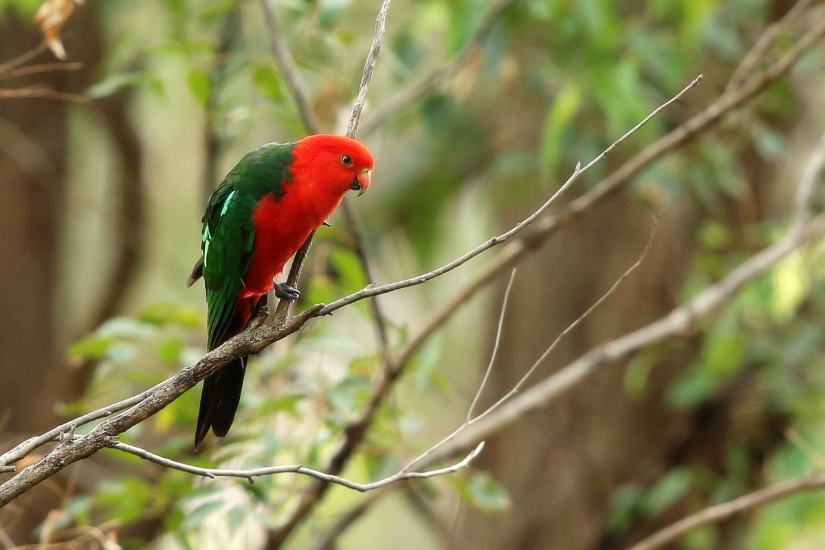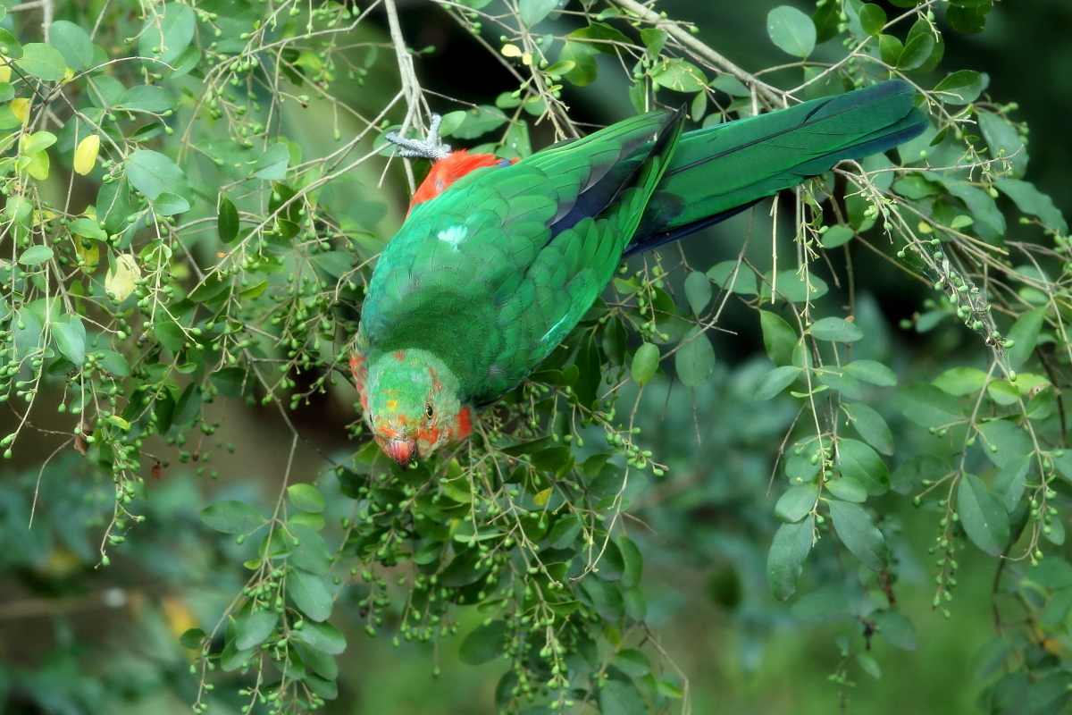 Kolejna papuga w mojej kolekcji. Zdjęcia szkarłatki wykonane były w Sydney. Szkarłatka z racji swej urody jest też ptakiem hodowlanym.  Szkarłatki na prezentowanych zdjęciach są oczywiście dzikie. Miały swój krzew, na który rano i wieczorem przylatywały aby się posilić. Zachowując się spokojnie, pozwalały wykonywać sobie zdjęcia z kilku metrów. Jedynie samiec w parku (na drzewie) był bardzo ostrożny i nie pozwolił podejść bliżej niż na kilkanaście metrów. Samiec szkarłatki ma niemal cały czerwony tułów i zielone skrzydła. Osobniki młode tracą z czasem zielone ubarwienie. Papugi te dorastają do około 40 cm długości i zamieszkują wyłącznie wschodnie wybrzeże Australii.