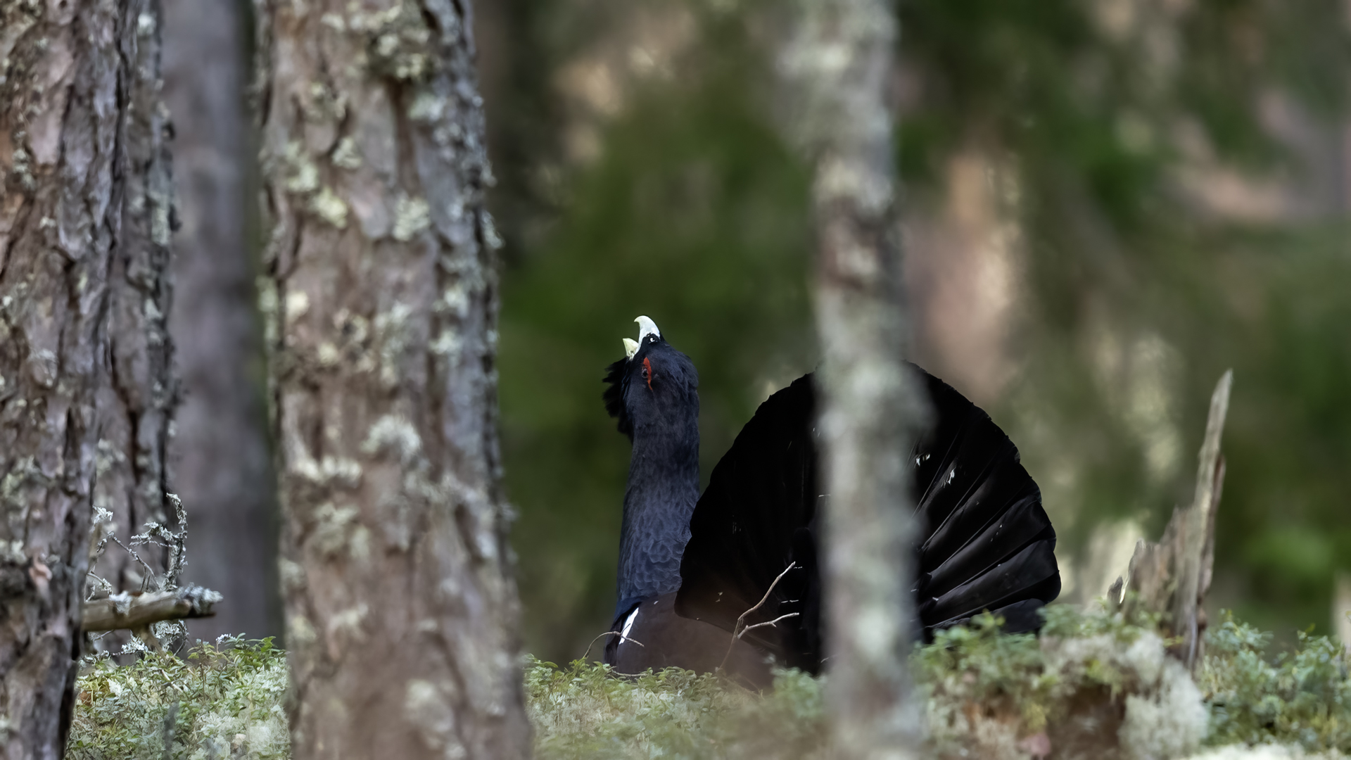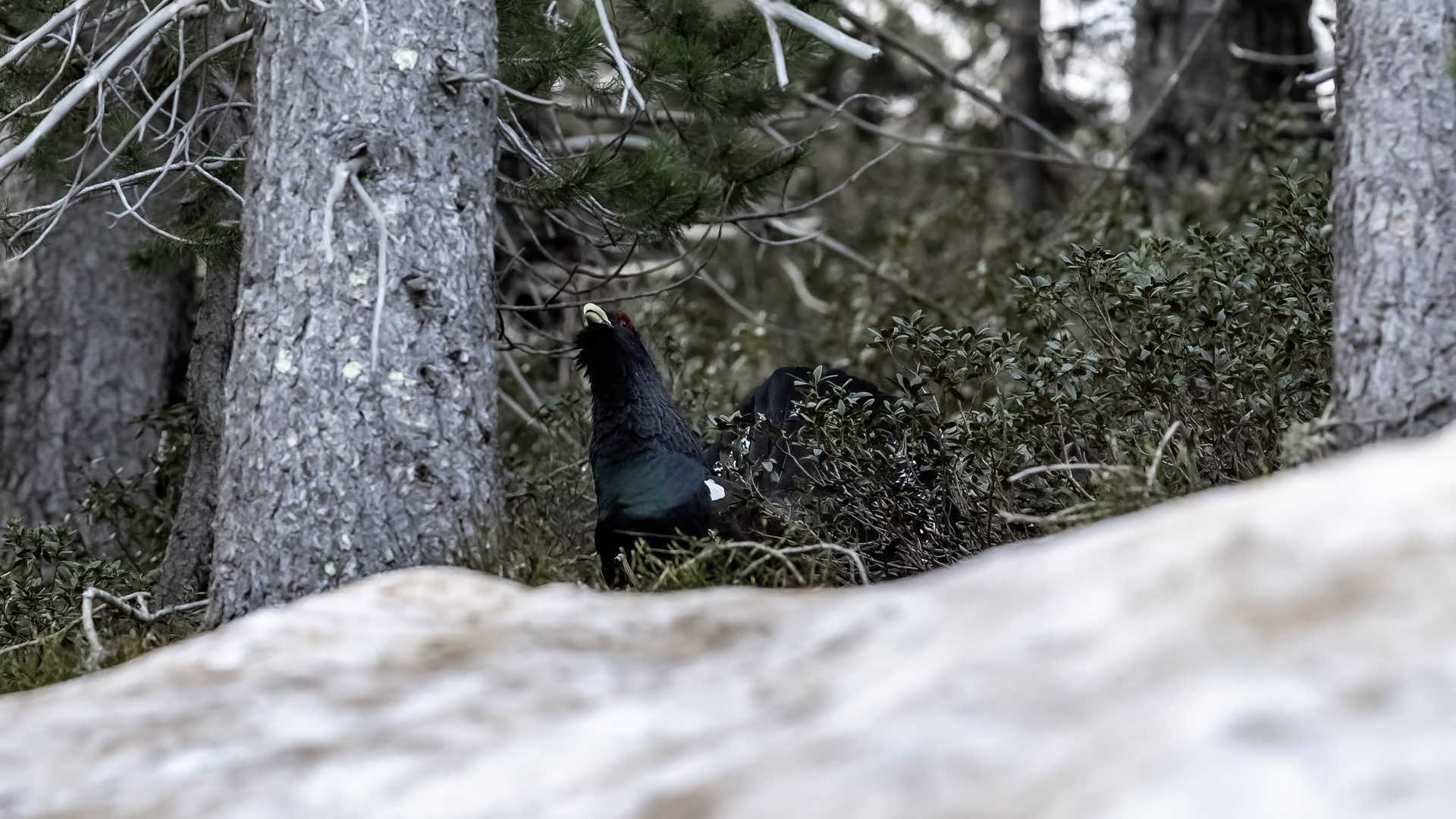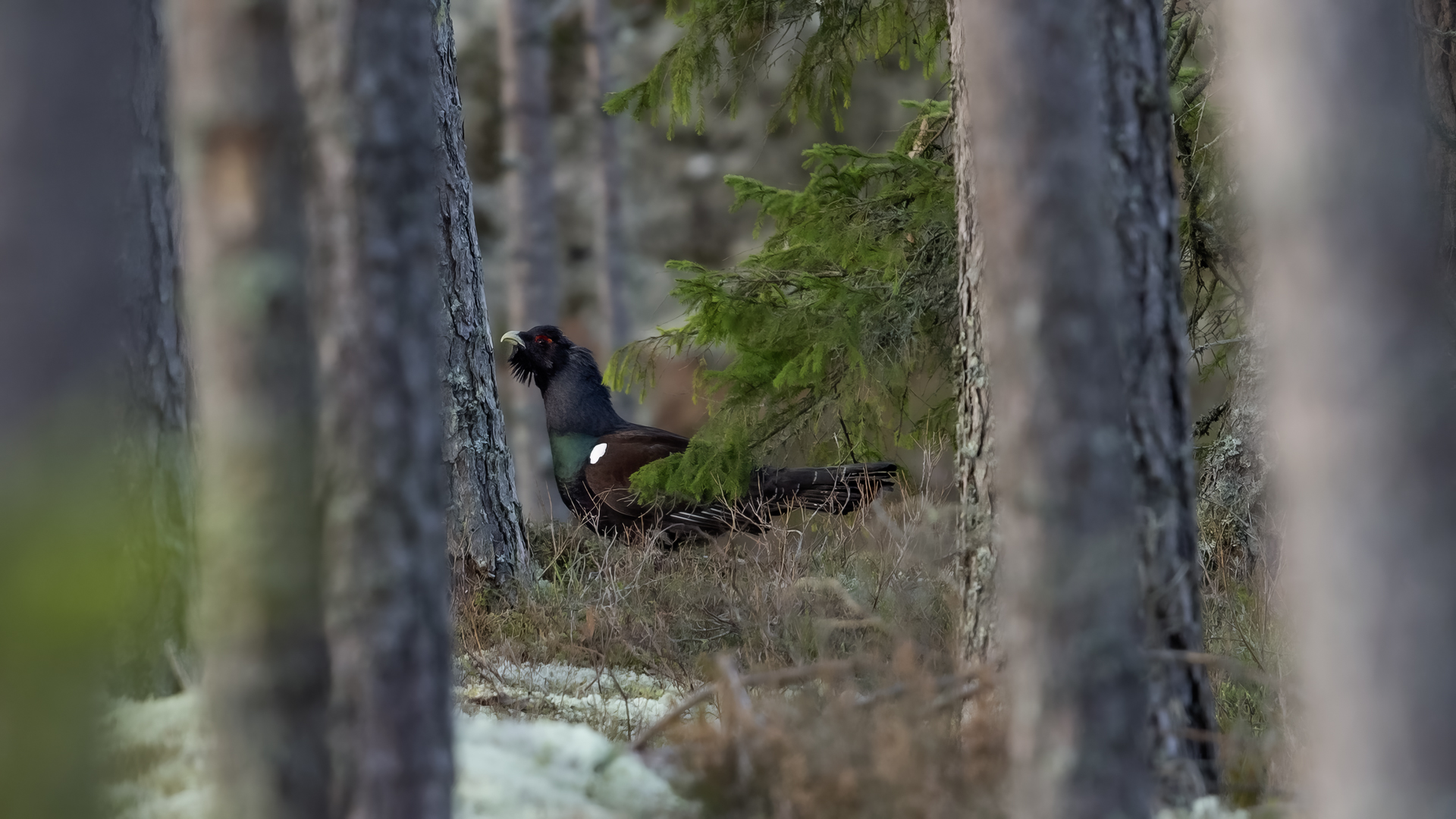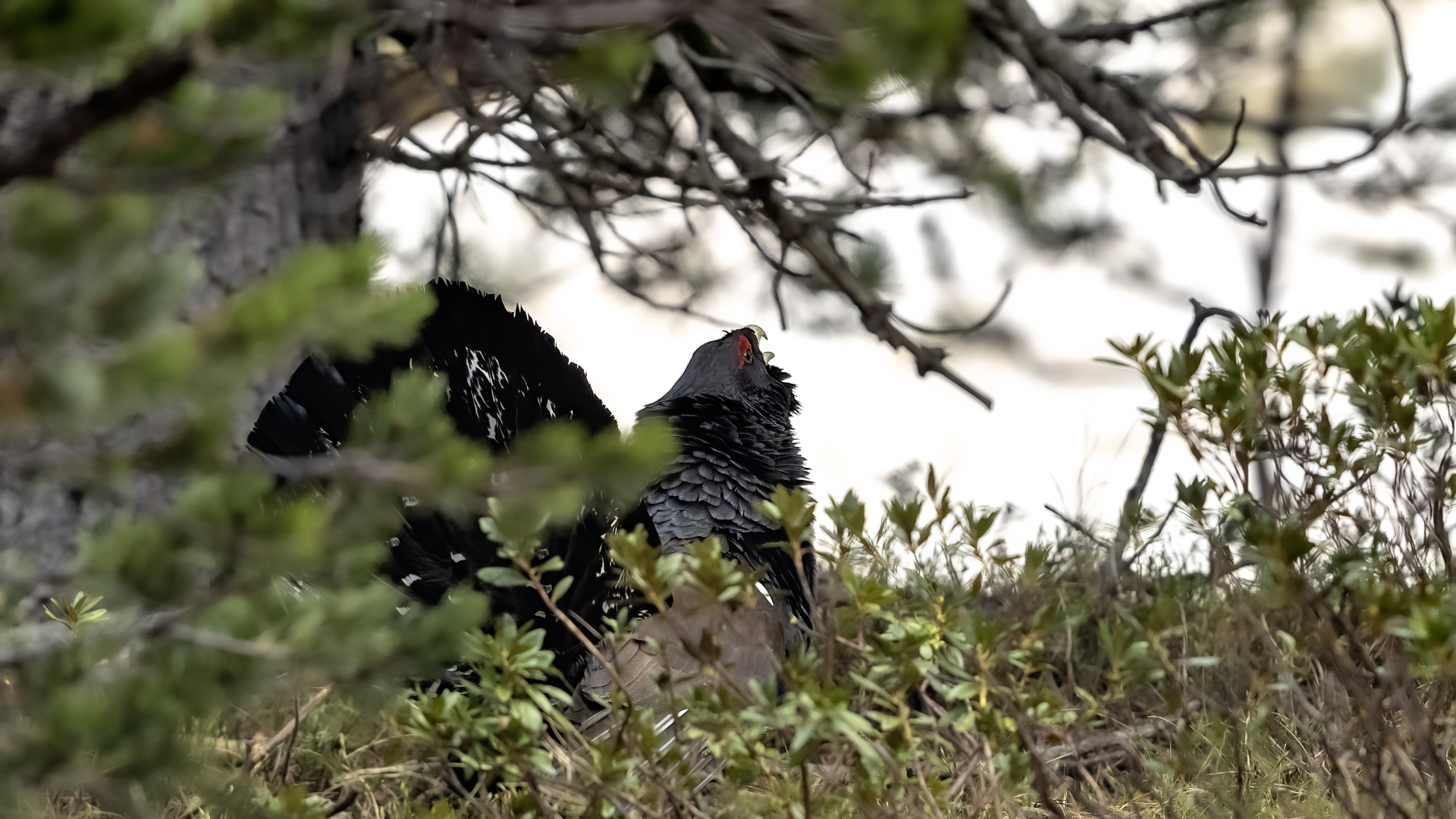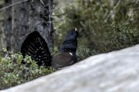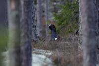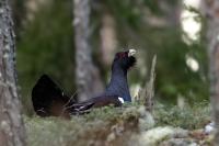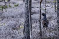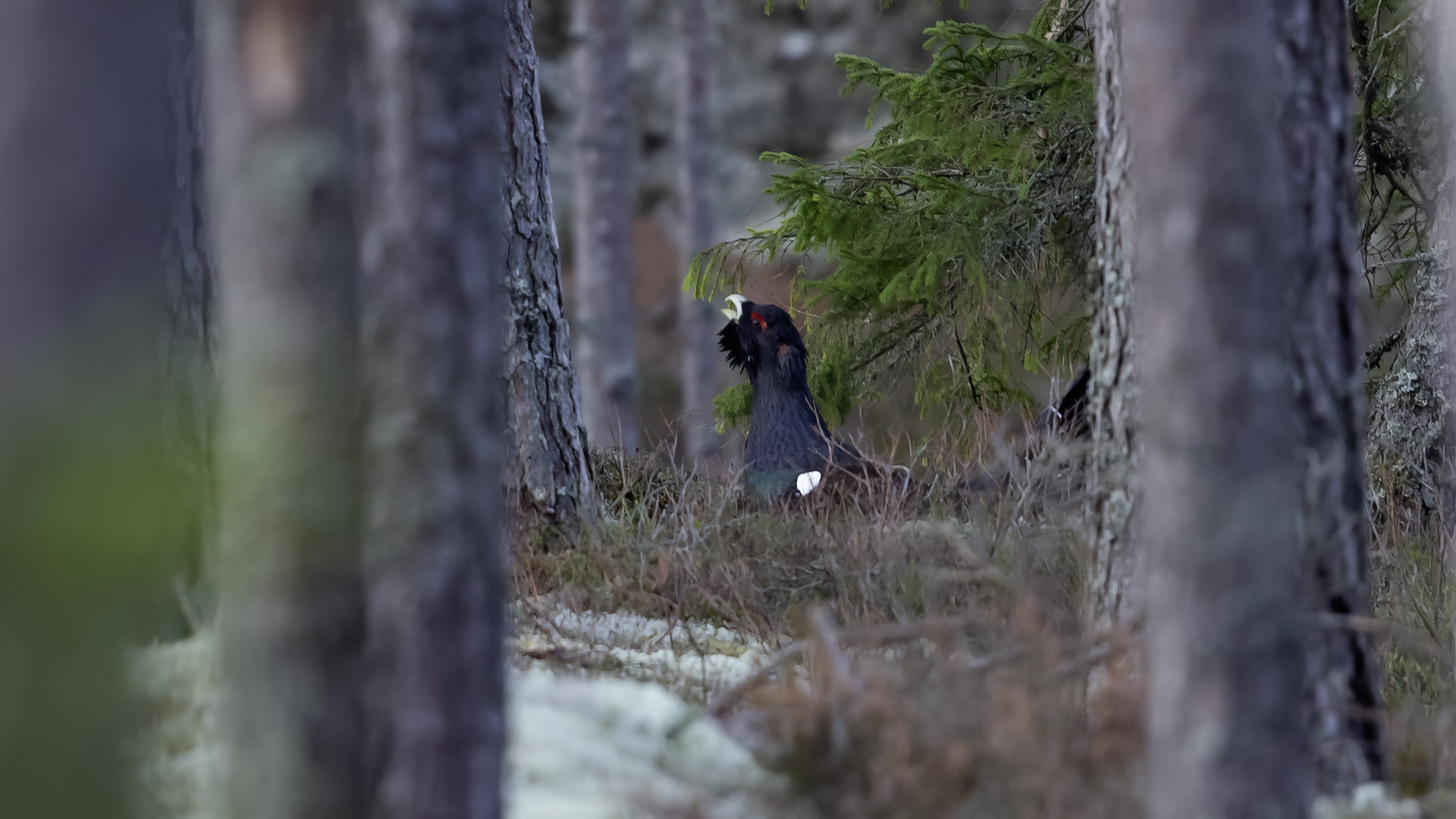Miejmy nadzieję, że tak właśnie się stało i przeczytaliście tekst o cietrzewiach i rozumiecie dlaczego wróciliśmy w wyśmienitych nastrojach do tych samych namiotów, które wydały się nam teraz jak zupełnie komfortowe, bezpieczne miejsca noclegowe. Scenariusz zdarzeń się powtarza. Zasypiamy po 20-tej wraz z lasem w którym zapanowała cisza. Nie na długo, bo po 5 rano słychać budzący się do życia las. Są głuszce! Tym razem jeden samiec przeszedł dość blisko, a drugi w oddali na dłuższą chwilę zamarł w bezruchu, tak że zastosowane długie czasy ekspozycji, mimo wysokiej czułości pozwoliły wykonać ostre zdjęcie. No cóż bardziej dokumentacyjne, ale tych kilka zdjęć będzie pamiątką dość specyficznych warsztatów fotograficznych, podczas których można powiedzieć, że mieszkaliśmy dosłownie tych kilka dni w lesie, z głuszcami, cietrzewiami. Tak, właśnie powstały prezentowane zdjęcia. Południowe, krótkie przerwy zaowocowały zdjęciami innych gatunków, ale o tym już w innych galeriach, związanych z wyjazdem do Szwecji.