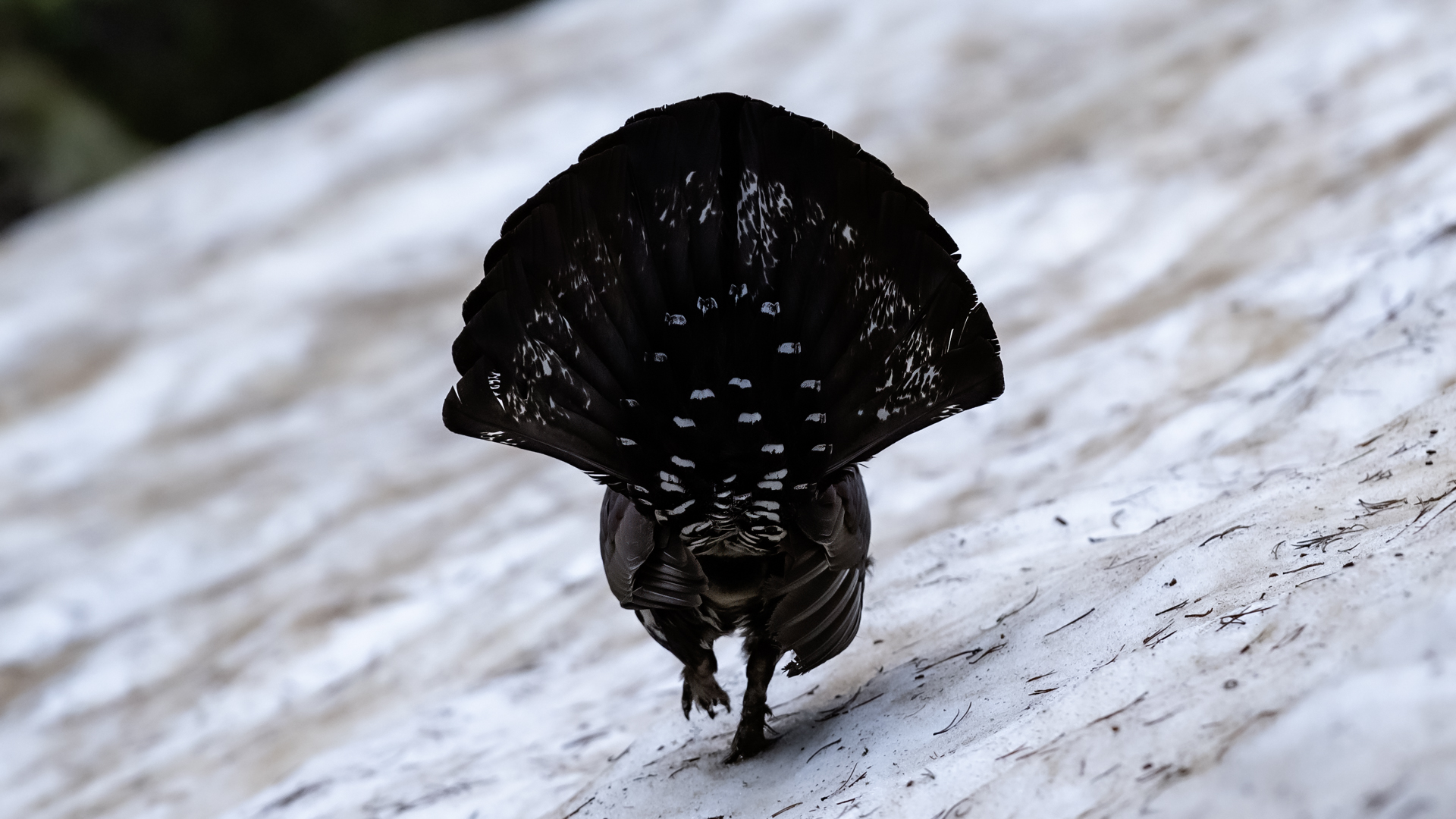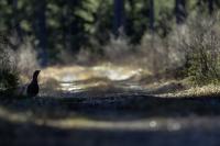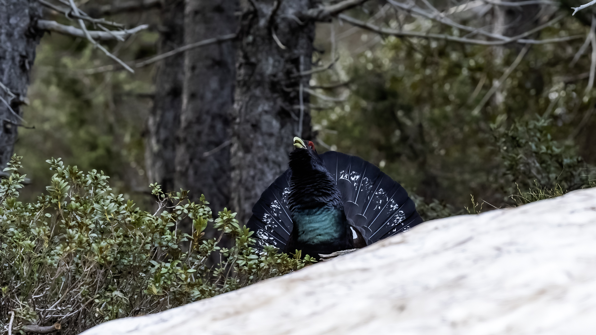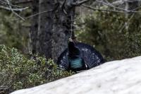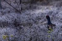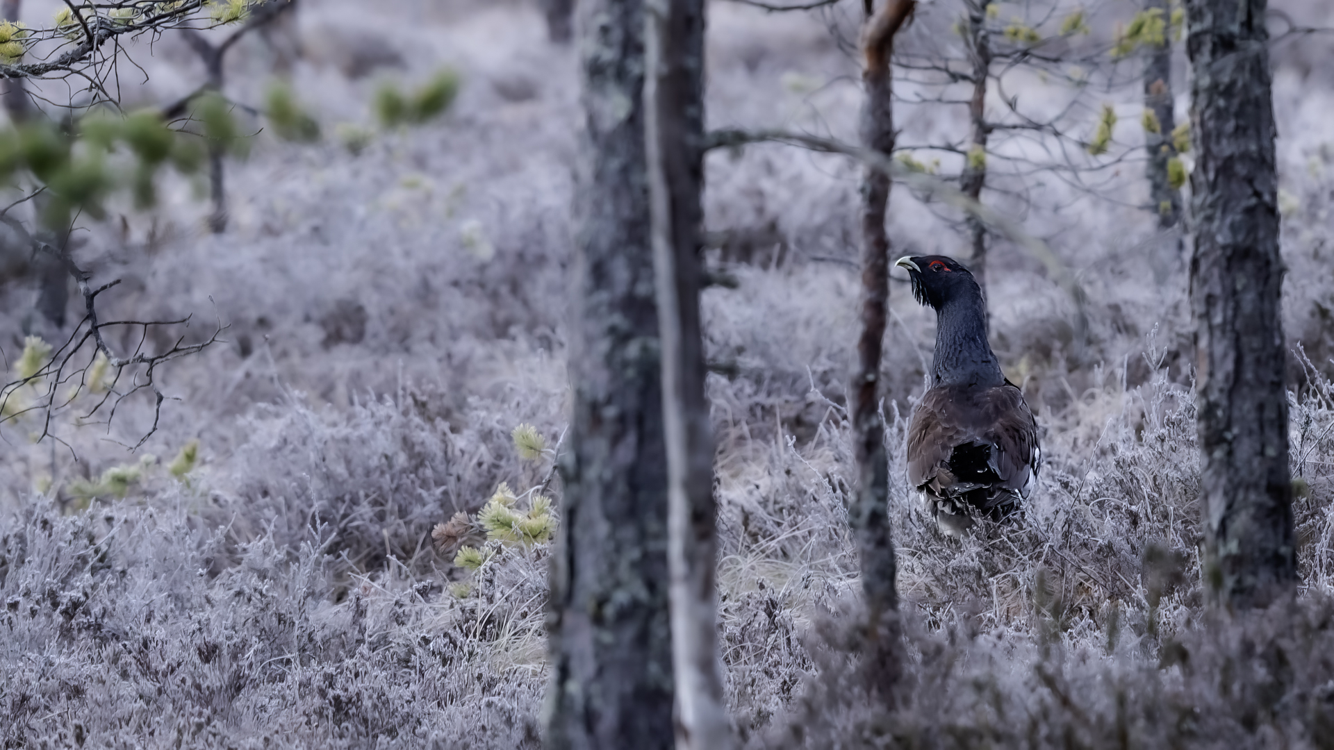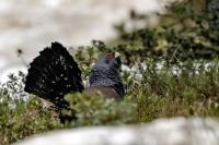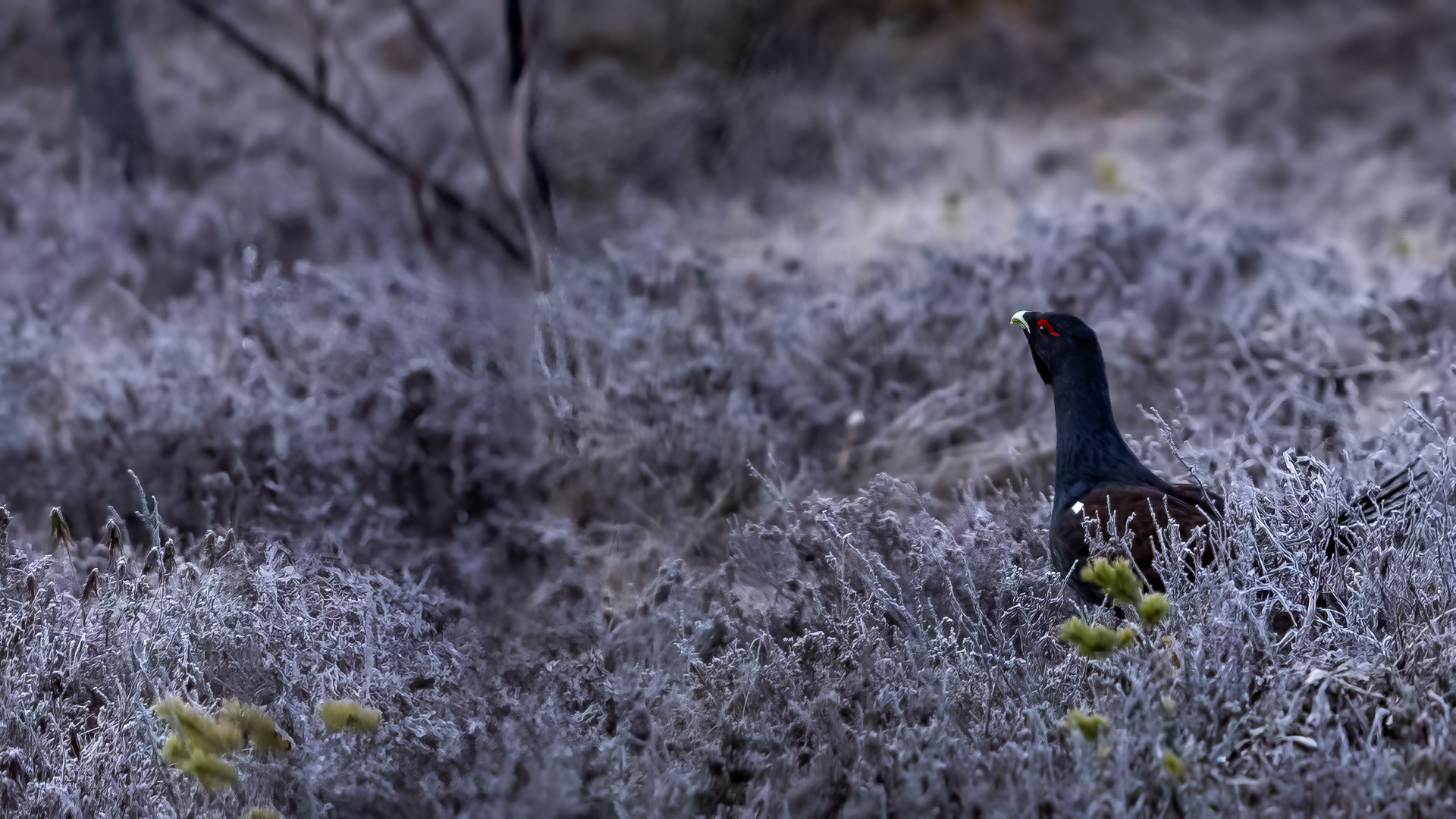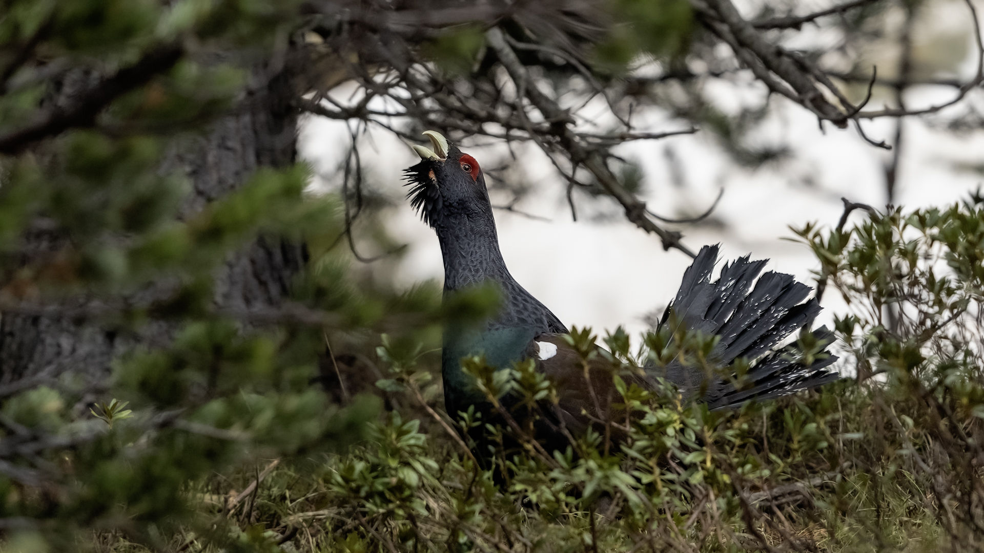 Miejmy nadzieję, że tak właśnie się stało i przeczytaliście tekst o cietrzewiach i rozumiecie dlaczego wróciliśmy w wyśmienitych nastrojach do tych samych namiotów, które wydały się nam teraz jak zupełnie komfortowe, bezpieczne miejsca noclegowe. Scenariusz zdarzeń się powtarza. Zasypiamy po 20-tej wraz z lasem w którym zapanowała cisza. Nie na długo, bo po 5 rano słychać budzący się do życia las. Są głuszce! Tym razem jeden samiec przeszedł dość blisko, a drugi w oddali na dłuższą chwilę zamarł w bezruchu, tak że zastosowane długie czasy ekspozycji, mimo wysokiej czułości pozwoliły wykonać ostre zdjęcie. No cóż bardziej dokumentacyjne, ale tych kilka zdjęć będzie pamiątką dość specyficznych warsztatów fotograficznych, podczas których można powiedzieć, że mieszkaliśmy dosłownie tych kilka dni w lesie, z głuszcami, cietrzewiami. Tak, właśnie powstały prezentowane zdjęcia. Południowe, krótkie przerwy zaowocowały zdjęciami innych gatunków, ale o tym już w innych galeriach, związanych z wyjazdem do Szwecji.