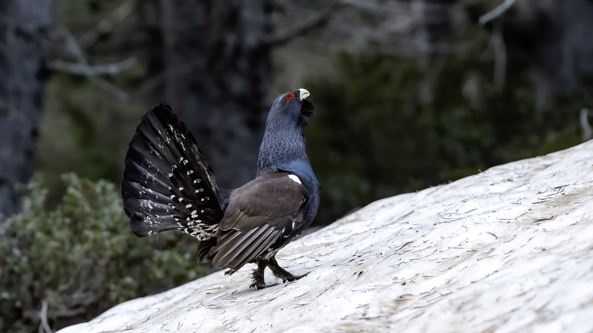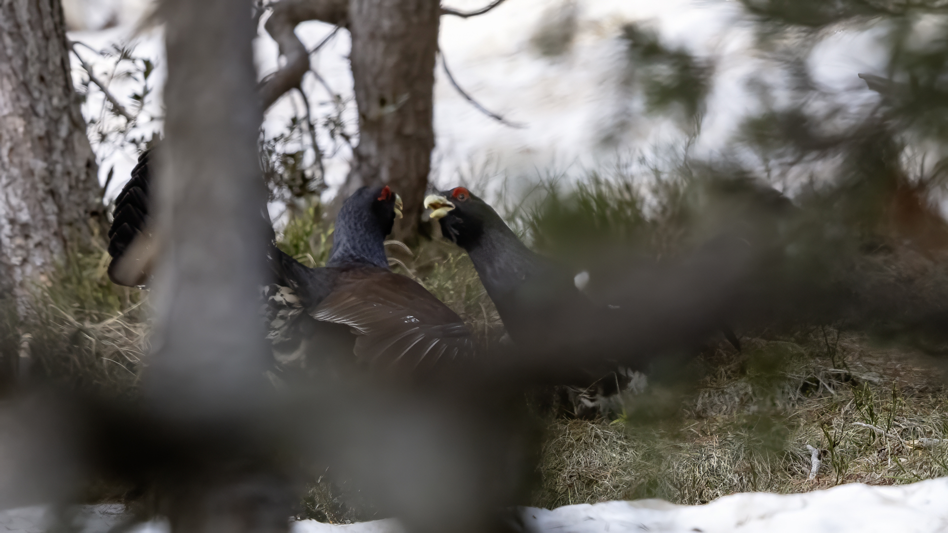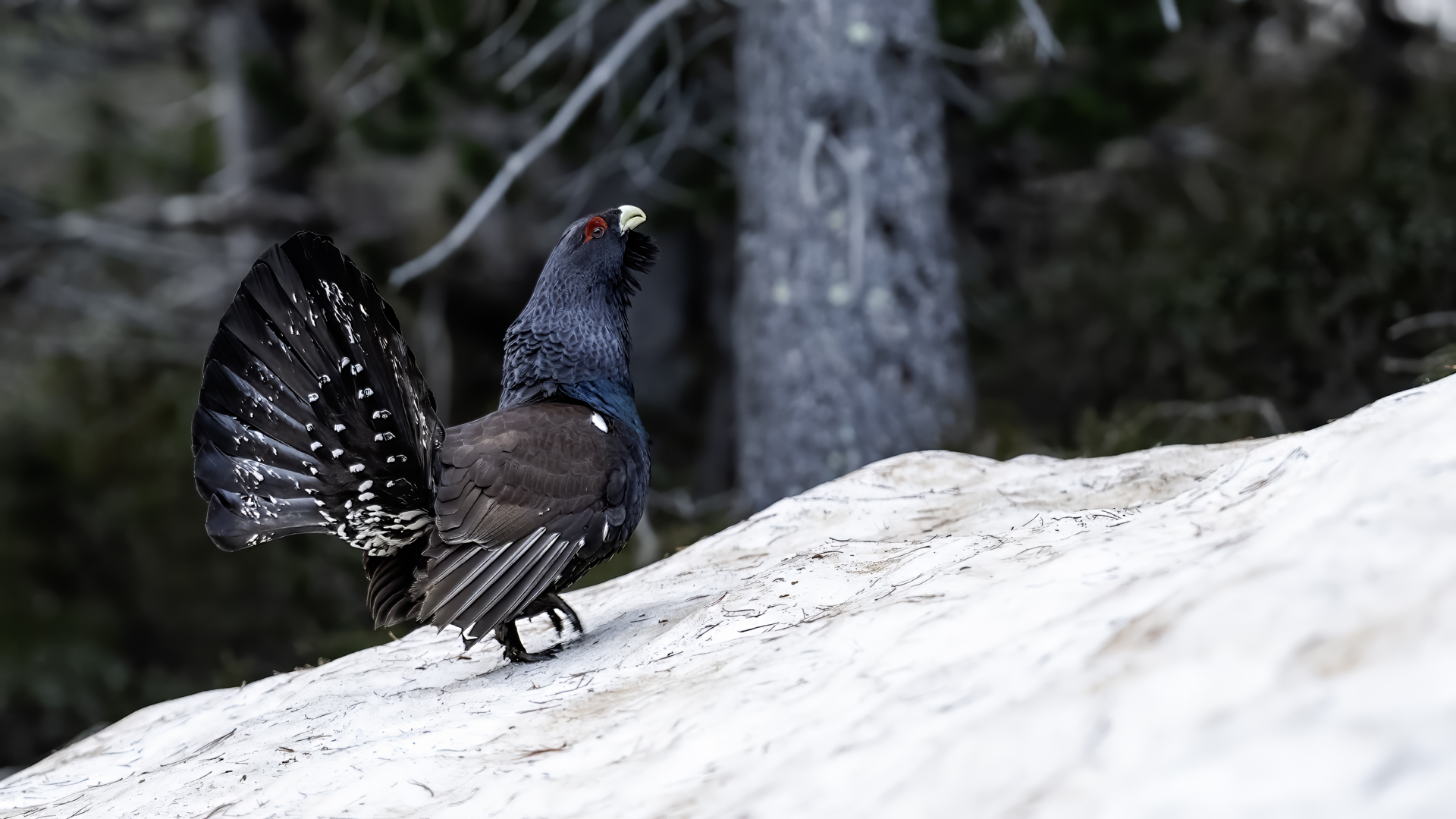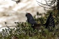 Teksty związane z plenerem w Szwecji rozpoczynam od głuszca. I to nie przez przypadek. Od dawna planowałem zobaczyć i sfotografować tego przepięknego ptaka w jego środowisku naturalnym. Ale, że w Polsce to bardzo rzadki gatunek, więc trzeba było zaplanować plener poza granicami kraju. Głuszec to największy przedstawiciel grzebiących. Samce mogą wagą przekraczać 6 kilogramów i rozpiętości skrzydeł około 1,3 metra. Samice są znacznie mniejsze od samców. Ale te informacje nie zadecydowały o chęci obserwacji tych ptaków. Podobnie jak z dropiami, zadecydowały zachowania godowe, kolory upierzenia ptaków i otoczenia - pięknego borealnego lasu. Tym razem charakter warsztatów przybrał zupełnie odmienny charakter. Organizator po przyjeździe pięknie nas powitał, po czym pospieszał, abyśmy jak najwcześniej pojechali już do lasu. Tu pierwsza niespodzianka, bo sądziliśmy, że „klasycznie” do czatowni wejdziemy godzinę, dwie przed wschodem słońca i będziemy wyczekiwać głuszców. Ale nie z tym gatunkiem ptaka. Dwie godziny przed zachodem trzeba być w czatowniach, by już w ciszy i spokoju nasłuchiwać, czy do okolicy naszego noclegu nie przylatują ptaki, które też tam będą nocować. W lesie w którym panuje cisza nie sposób przegapić tego dźwięku. Głuszcze to duże ptaki, którym startowi i lądowaniu w dość gęstym lesie zawsze towarzyszył hałas z tym związany. Tak, więc zajmujemy miejsca w czatowniach i tu kolejne zaskoczenie - to lekkie jedno-osobowe namioty, wyposażone w śpiwór, materac i karimatę. Na zewnątrz gdzieniegdzie śnieg, nad ranem temperatura poniżej zera, zapowiada się ciekawie. Ale nic, po przebyciu ponad tysiąca kilometrów, trzeba wykonać jeszcze metr i wejść do namiotu. Ciepłe ubranie i gruby śpiwór, czapka czyniły dość znośnym nocleg, poza nienaturalnie zimnymi policzkami i nosem podczas snu. Ale nasłuchiwanie odgłosu budzącego się lasu wynagrodziło wszystkie niewygody. Niedługo przed świtem słychać było bardzo wyraźnie sóweczkę, a o świcie w oddali przepiękny klangor żurawi. No i dla mnie nowość specyficzne odgłosy tokujących głuszców. Słychać było rzeczywiście kilka w okolicy, ale nie są one donośne zwłaszcza z perspektywy namiotu, z którego na zewnątrz pozostawiłem tylko niewielkie otwory obserwacyjne. Dopiero w sytuacji zauważonego ptaka bardzo powoli ustawiałem statyw z obiektywem, który był w pełni schowany, niewystający z namiotu. Jest jeszcze ciemno, ale widać w oddali dwie sylwetki głuszców. Próbuje nagrać dźwięk w oczekiwaniu za światłem. Niestety, głuszce bardzo spokojnie i dostojnie, ale oddalają się. Powstaje kilka zdjęć, ale o kiepskiej jakości. Głuszce nie mają tak, dokładnie określonego miejsca tokowania, jak cietrzewie. Dlatego też dużo trudniej je obserwować i a jeszcze trudniej sfotografować, tak, by oddać całe piękno i majestat tokującego samca. Nie mniej jednak powstaje kilka zdjęć, niestety samica pojawiła się na chwilę i to dość wysoko na drzewie i nie powstaje żadne zdjęcie samicy.