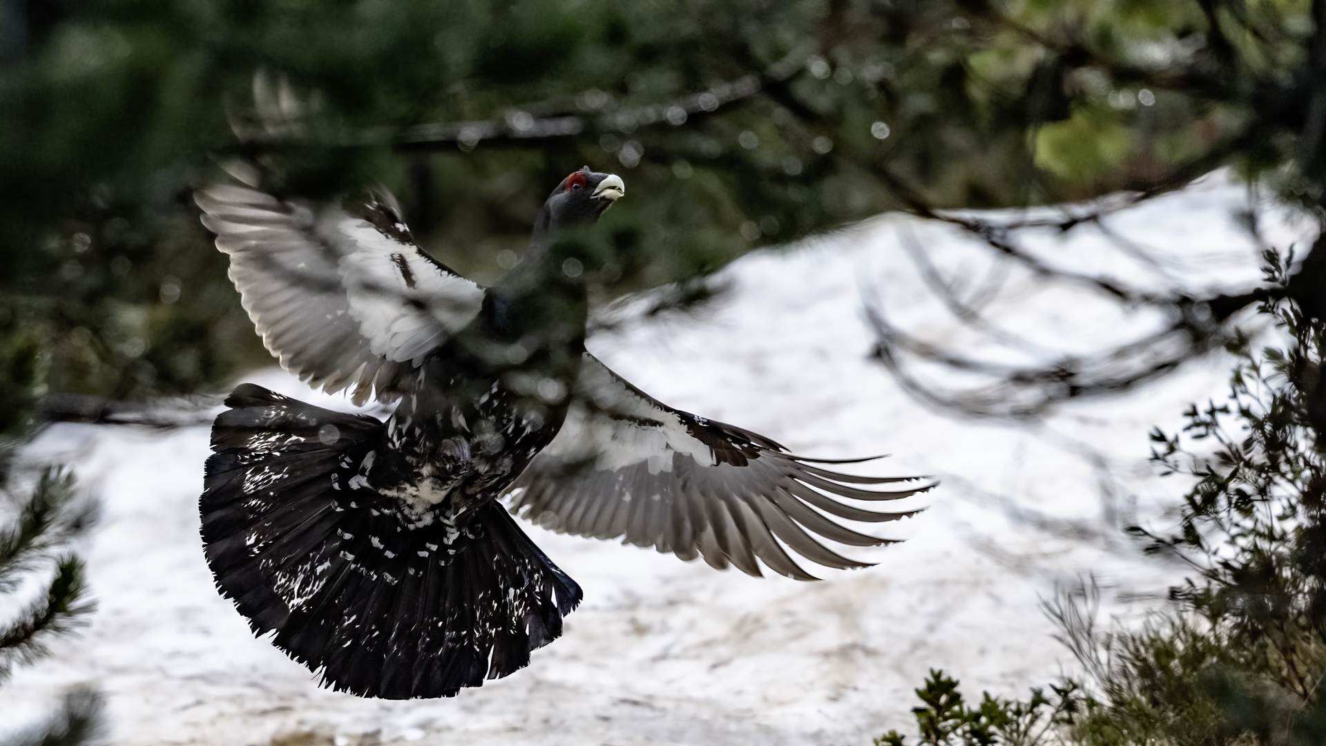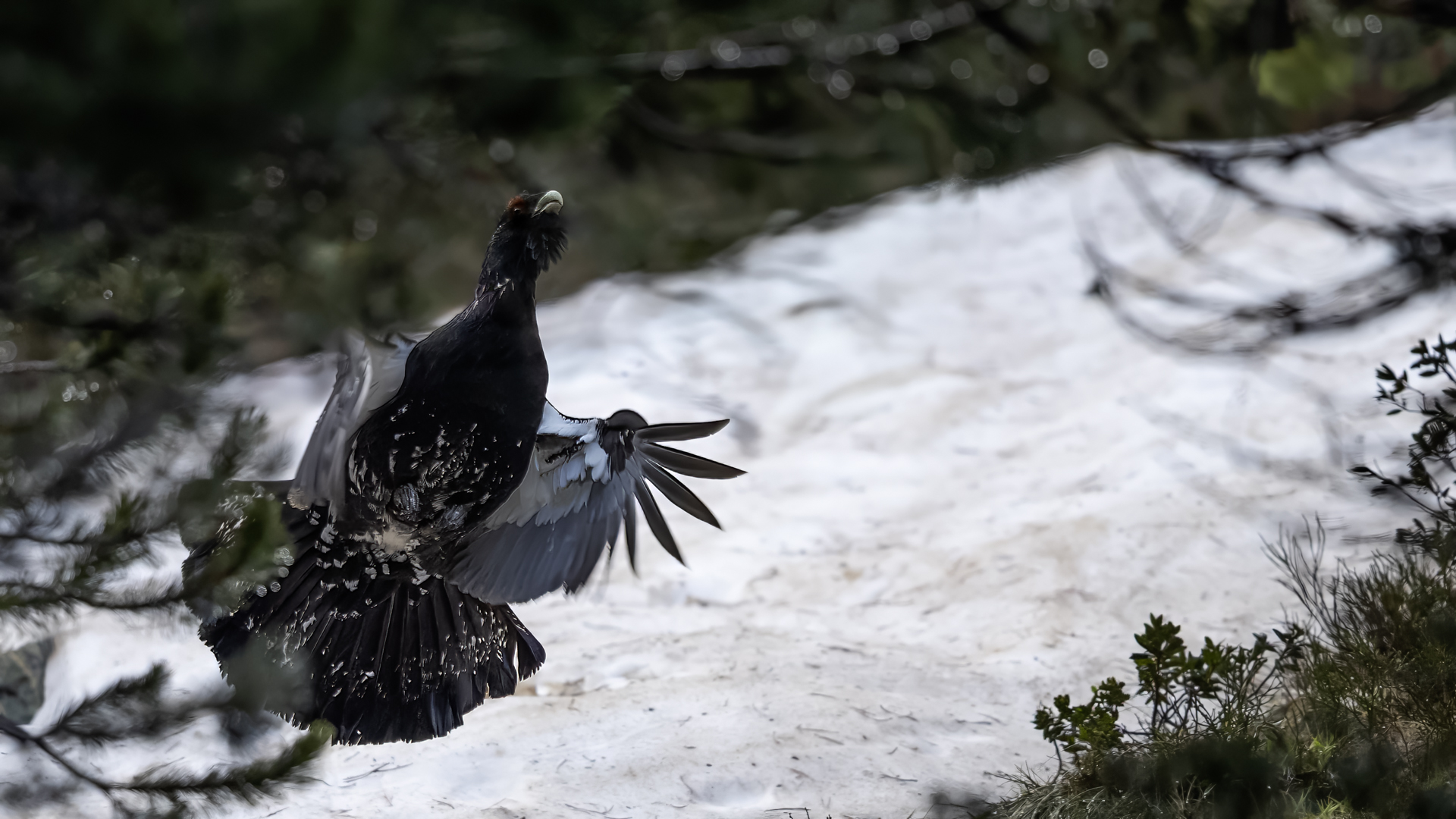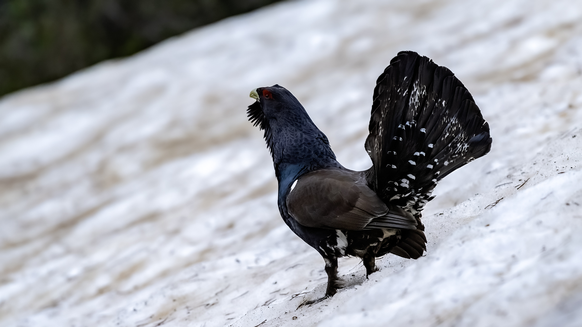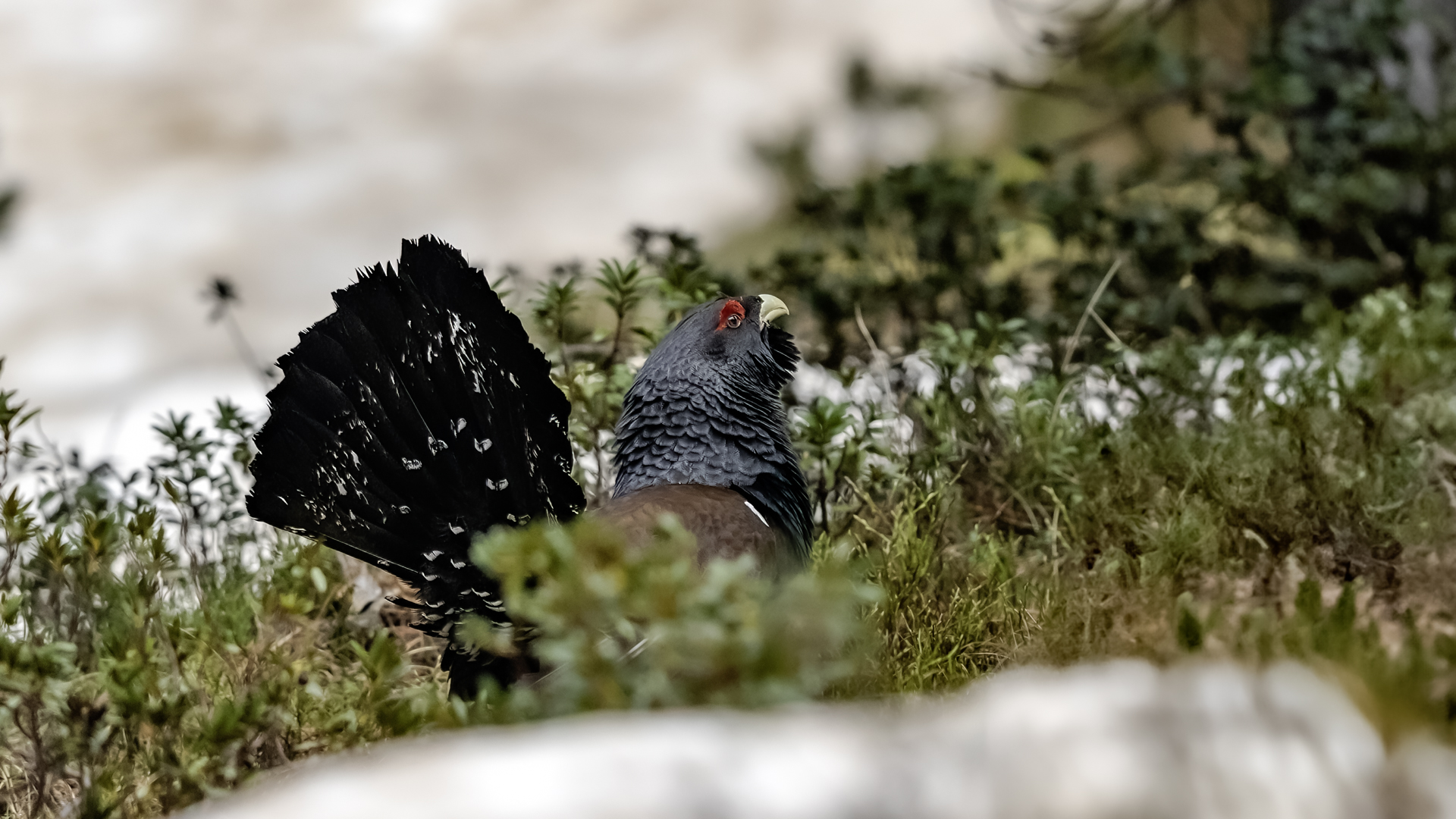 Teksty związane z plenerem w Szwecji rozpoczynam od głuszca. I to nie przez przypadek. Od dawna planowałem zobaczyć i sfotografować tego przepięknego ptaka w jego środowisku naturalnym. Ale, że w Polsce to bardzo rzadki gatunek, więc trzeba było zaplanować plener poza granicami kraju. Głuszec to największy przedstawiciel grzebiących. Samce mogą wagą przekraczać 6 kilogramów i rozpiętości skrzydeł około 1,3 metra. Samice są znacznie mniejsze od samców. Ale te informacje nie zadecydowały o chęci obserwacji tych ptaków. Podobnie jak z dropiami, zadecydowały zachowania godowe, kolory upierzenia ptaków i otoczenia - pięknego borealnego lasu. Tym razem charakter warsztatów przybrał zupełnie odmienny charakter. Organizator po przyjeździe pięknie nas powitał, po czym pospieszał, abyśmy jak najwcześniej pojechali już do lasu. Tu pierwsza niespodzianka, bo sądziliśmy, że „klasycznie” do czatowni wejdziemy godzinę, dwie przed wschodem słońca i będziemy wyczekiwać głuszców. Ale nie z tym gatunkiem ptaka. Dwie godziny przed zachodem trzeba być w czatowniach, by już w ciszy i spokoju nasłuchiwać, czy do okolicy naszego noclegu nie przylatują ptaki, które też tam będą nocować. W lesie w którym panuje cisza nie sposób przegapić tego dźwięku. Głuszcze to duże ptaki, którym startowi i lądowaniu w dość gęstym lesie zawsze towarzyszył hałas z tym związany. Tak, więc zajmujemy miejsca w czatowniach i tu kolejne zaskoczenie - to lekkie jedno-osobowe namioty, wyposażone w śpiwór, materac i karimatę. Na zewnątrz gdzieniegdzie śnieg, nad ranem temperatura poniżej zera, zapowiada się ciekawie. Ale nic, po przebyciu ponad tysiąca kilometrów, trzeba wykonać jeszcze metr i wejść do namiotu. Ciepłe ubranie i gruby śpiwór, czapka czyniły dość znośnym nocleg, poza nienaturalnie zimnymi policzkami i nosem podczas snu. Ale nasłuchiwanie odgłosu budzącego się lasu wynagrodziło wszystkie niewygody. Niedługo przed świtem słychać było bardzo wyraźnie sóweczkę, a o świcie w oddali przepiękny klangor żurawi. No i dla mnie nowość specyficzne odgłosy tokujących głuszców. Słychać było rzeczywiście kilka w okolicy, ale nie są one donośne zwłaszcza z perspektywy namiotu, z którego na zewnątrz pozostawiłem tylko niewielkie otwory obserwacyjne. Dopiero w sytuacji zauważonego ptaka bardzo powoli ustawiałem statyw z obiektywem, który był w pełni schowany, niewystający z namiotu. Jest jeszcze ciemno, ale widać w oddali dwie sylwetki głuszców. Próbuje nagrać dźwięk w oczekiwaniu za światłem. Niestety, głuszce bardzo spokojnie i dostojnie, ale oddalają się. Powstaje kilka zdjęć, ale o kiepskiej jakości. Głuszce nie mają tak, dokładnie określonego miejsca tokowania, jak cietrzewie. Dlatego też dużo trudniej je obserwować i a jeszcze trudniej sfotografować, tak, by oddać całe piękno i majestat tokującego samca. Nie mniej jednak powstaje kilka zdjęć, niestety samica pojawiła się na chwilę i to dość wysoko na drzewie i nie powstaje żadne zdjęcie samicy.