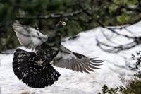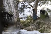 Andora to dość dziwny kierunek, jak na wyjazd z Polski na głuszce. Białoruś, Skandynawia tak, ale Andora? I rzeczywiście byliśmy pierwszymi Polakami na warsztatach Marka. Kierunek dziwny i do tego trochę ekstremalne fotografowanie. Wiadomym jest, że aby fotografować głuszce trzeba spać w namiotach-czatowniach - jak wszędzie. Różnica w Andorze polega na tym, że te namioty są na wysokości około 2300 metrów, a ostatnie kilkaset metrów, pod górę, trzeba wejść samemu z około 30-kilogramowym ekwipunkiem. Tak, tak, nie wiadomo, czy głuszce przyjdą blisko, czy potrzebne będą długie, ciężkie obiektywy. Jednym słowem, lepiej być przygotowanym i zabrać wszystkie. Do tego ciepły śpiwór, ubrania, jedzenie, napoje. W namiocie rozbitym pośród śniegu trzeba przebywać od około 6 godziny po południu do około 10 rano. Co do samych ptaków, to ostatecznie można rzec, że nie dopisały. Ptaki tokowały, ale zawsze w miejscach, gdzie trudno było zrobić dobre zdjęcia poprzez gałęzie, krzewy. Trudno też dziwić im się, przebywają w terenie, gdzie orzeł przedni nie należy do rzadkości i poluje na nie. Ale tak to już bywa, jeśli chce się fotografować dziką przyrodę, trzeba mieć jeszcze trochę szczęścia. Mimo wszystko warto było. Noce w przepięknych górach, pobudka przy głosach tokujących głuszców, odgłosach mysikrólików i sosnówek, to niezapomniane wrażenia. Do tego Mark, organizator warsztatów, okazał się kompetentnym, miłym przewodnikiem i stworzył atmosferę, dzięki której można było znieść trudy takiej fotografii i dotarcia na szczyt. Mark, dziękuję i pozdrawiam. Pozdrawiam też moich kompanów - dwóch Piotrów! Ostatecznie kilka moich dotychczasowych, dokumentacyjnych zdjęć, wreszcie, po czterech latach zostało zasilone nowymi, lepszymi zdjęciami. Mimo kiepskiej jakości dodałem też tych kilka zdjęć dokumentacyjnych na pamiątkę obserwacji walk głuszców. Galeria po wprowadzonych zmianach otrzymała ostatecznie kategorię dobrej, choć ta ocena jest względna i subiektywna. Widziałem ostatnio zdjęcia Piotra Noconia, setki..., tysiące wspaniałych zdjęć niezliczonych gatunków ptaków i nie tylko. Tak wspaniałego zbioru zdjęć nie widziałem na innych indywidualnych stronach internetowych. Piotr stworzył kategorię samą dla siebie, bo dorównać takiemu dorobkowi może chyba tylko wąska grupa osób na świecie. Trudno jest wymieniać wspaniale przedstawione przez Piotra gatunki, ale wszystkie gatunki maskonurów, orzeł przedni, rybołów, bielik, bielik olbrzymi, uszatka błotna, nury i wiele, wiele innych gatunków jest tak wspaniale obfotografowanych, że potencjalne galerie Piotra strony powinny mieć nawet setkę zdjęć i nie byłaby to galeria nudna i przeładowana. No tak, ale przy takim dorobku, aby to wszystko przedstawić w formie strony internetowej, usystematyzować i dokonać ostatecznego wyboru pośród setek, a czasami tysięcy zdjęć nadających się do publikowania, potrzeba przy dorobku Piotra już nie setek, ale tysięcy godzin. Piszę to wszystko bo mam nadzieję, że sprowokuję tym Piotra do pracy nad własną stroną. Zapewniam, że mogłaby ona być wizytówką fotografii przyrodniczej naszego kraju. Piotrze, Twoje zdjęcia inspirują, choć stanowią poziom trudny do osiągnięcia. Niemniej jednak taki dorobek trzeba pokazać światu i zostawić tym samym coś dla potomności zamiast kurzyć się na dyskach Twojego komputera! Tyle relacji z pobytu w Andorze, wyjazdu, do którego będzie się jeszcze pewnie nie raz wracało wspomnieniami, bo nie był to tuzinkowy wyjazd, ale miejsce, gdzie głuszce tokują jeszcze z początkiem czerwca...
